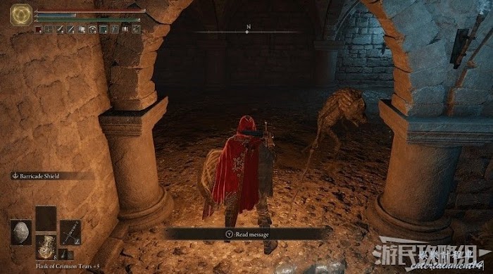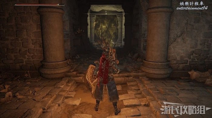 這兩堵隱藏牆壁都位於王室領地廢墟內。第一堵隱藏牆壁如下圖所示,是一堵搞大的拱形牆,撞開後,可以在後邊找到一個賜福。