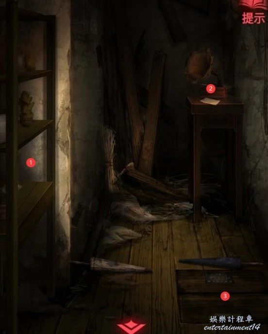 進入第三場景,先拿煤油燈回去用蠟燭點燃,然後回來調查兩把傘