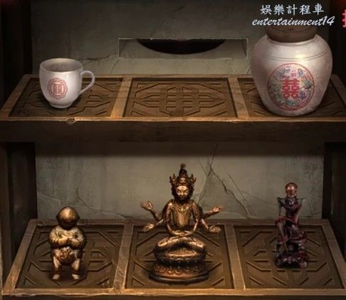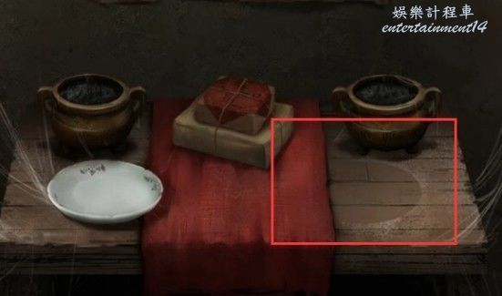 2-1 可以先把棗糕放如盤中,會發現灶神有變化,同時觀察右側還有一個盤子的痕跡,推測需要兩份祭品