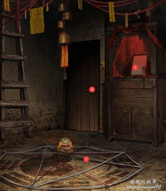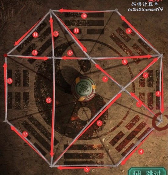 拿到口紅後,返回第四場景,可以用口紅把繩陣染紅,下圖為我個人解法
