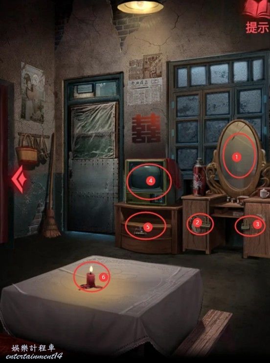 前面劇情不多說了,進入第一個場景,有6個需要用到的調查點