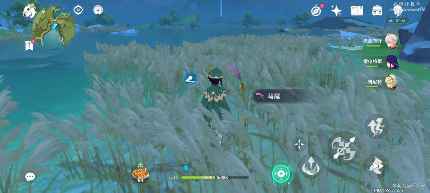 從石門的傳送點往下跳,馬上就可以找到一株馬尾,繼續往前走還有兩株,剛好可以完成三份調料(調料上限製作三份)