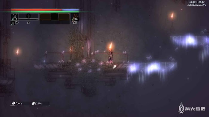 擊敗頭目後從大木樁右邊掛鉤來到右側平台上獲得微光石,微光石作用是在圍著一圈7個石頭中間使用,在一定的時間內出現隱藏道路;