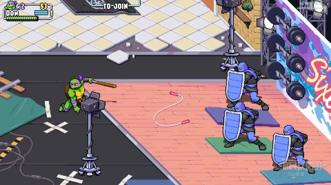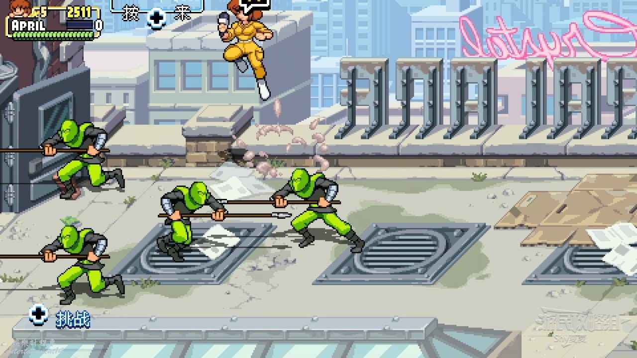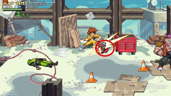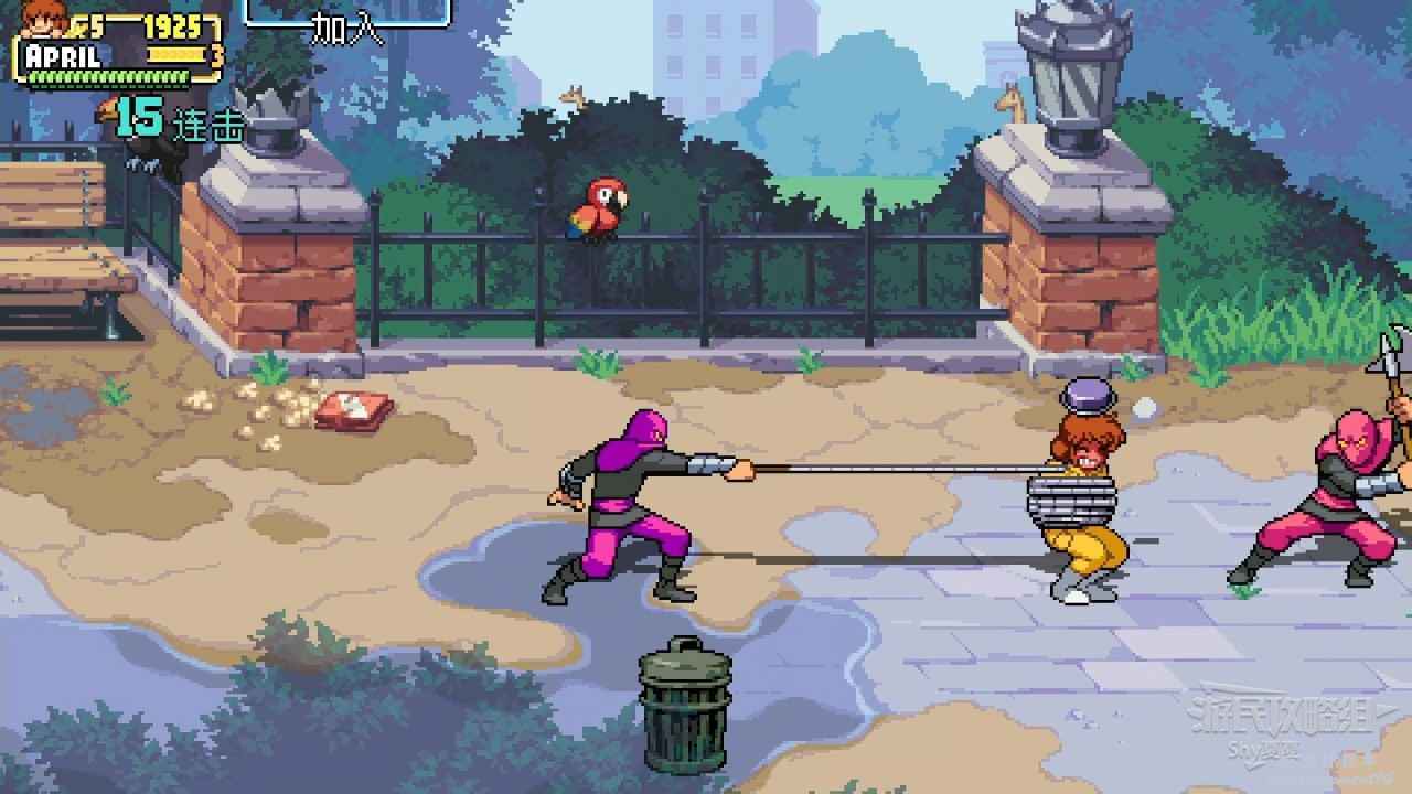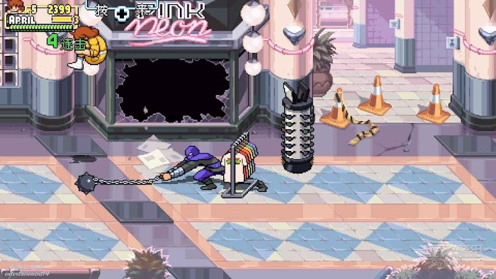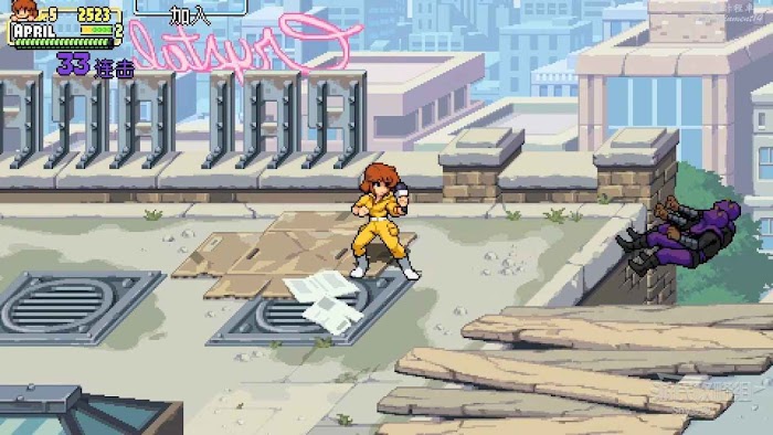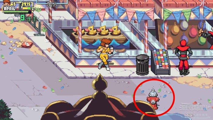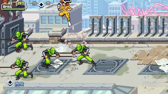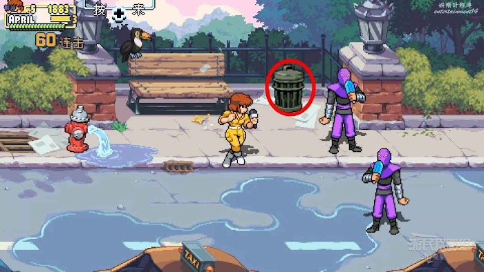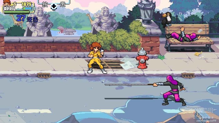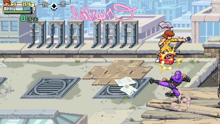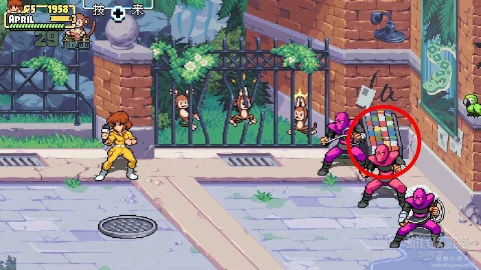 紫色大腳忍者:使用拳擊和飛踹,飛踹是霸體狀態,應對方法就是快速連續攻擊將其解決,遇到飛踹的紫衣忍者就直接後空翻躲避即可。紫色大腳忍者還會舉起各種道具來砸我們,要麼和他拉開距離,要麼就在他投擲出物品前攻擊他。
