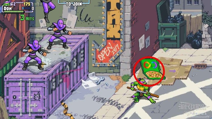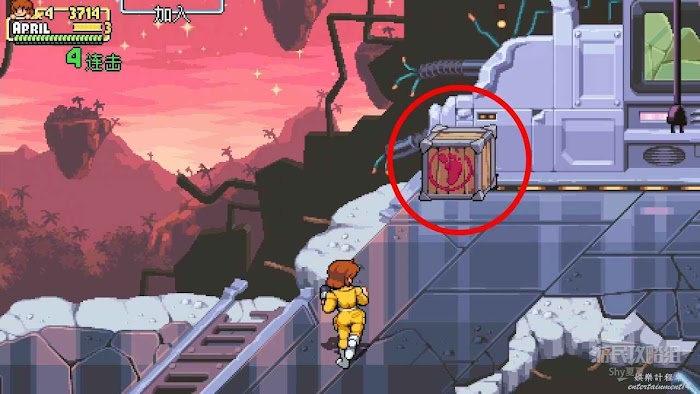 挑戰二,上圖位置往右走,不遠處就能看到大腳幫寶箱,打開後吃了能量披薩,殺掉兩名敵人即可完成挑戰。