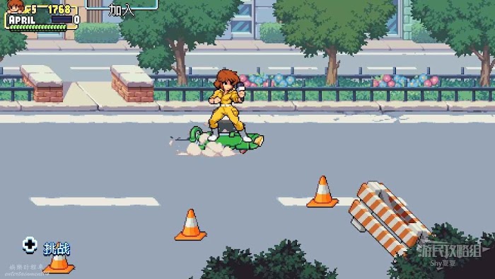 挑戰一、二:這兩個放在一起說,上面已經將敵人的應對方法講完了,下面就講講如何避免障礙物的傷害,本關障礙物第一階段主要是路障,可以用攻擊摧毀路障,也可以通過介面邊緣的提示進行躲避。在第一次看到怪獸卡車時,天上會掉下障礙物,也不能被這些障礙物砸到,否則也無法達成挑戰。