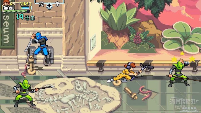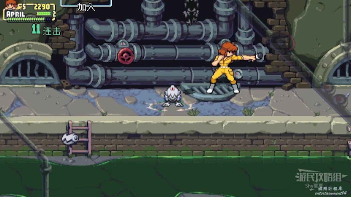 黃色大腳忍者:會丟出遠端攻擊的武器攻擊我們,應對方法就是躲避,也可以把投擲物打回去反殺對方。