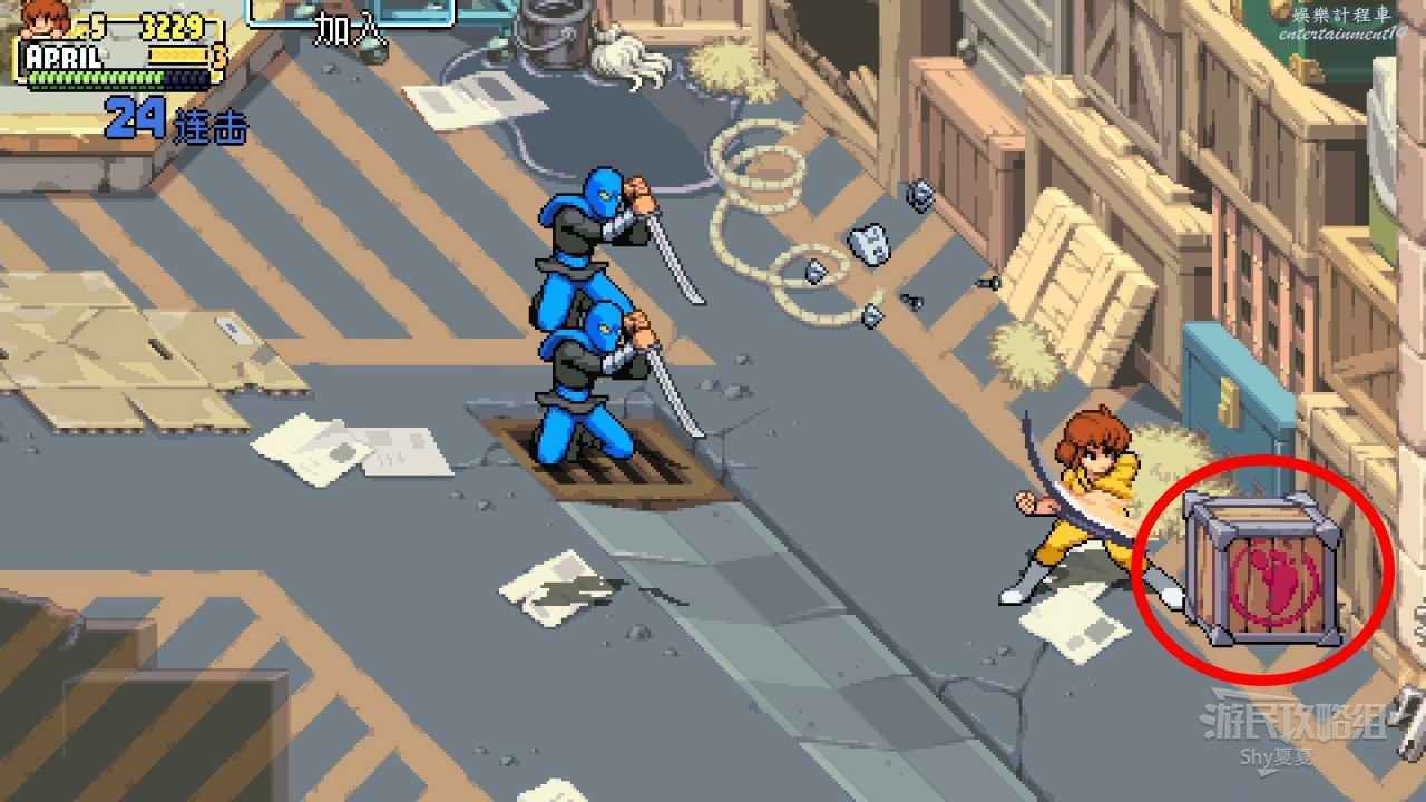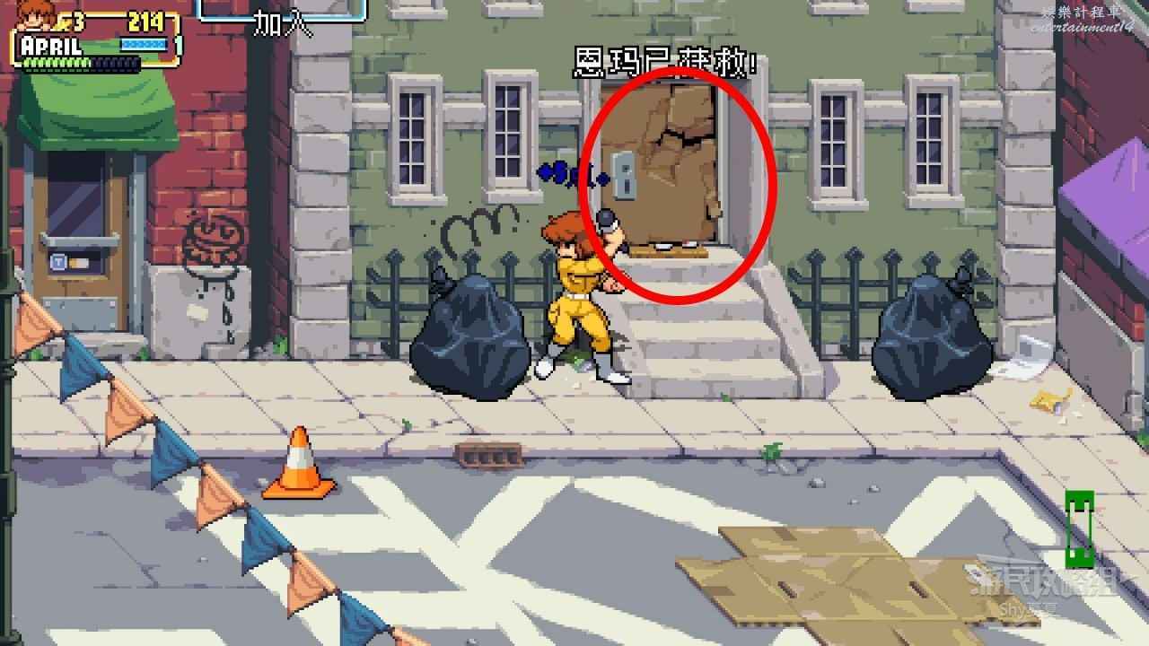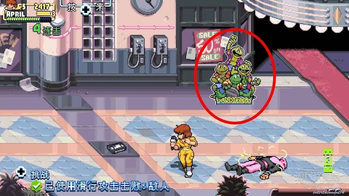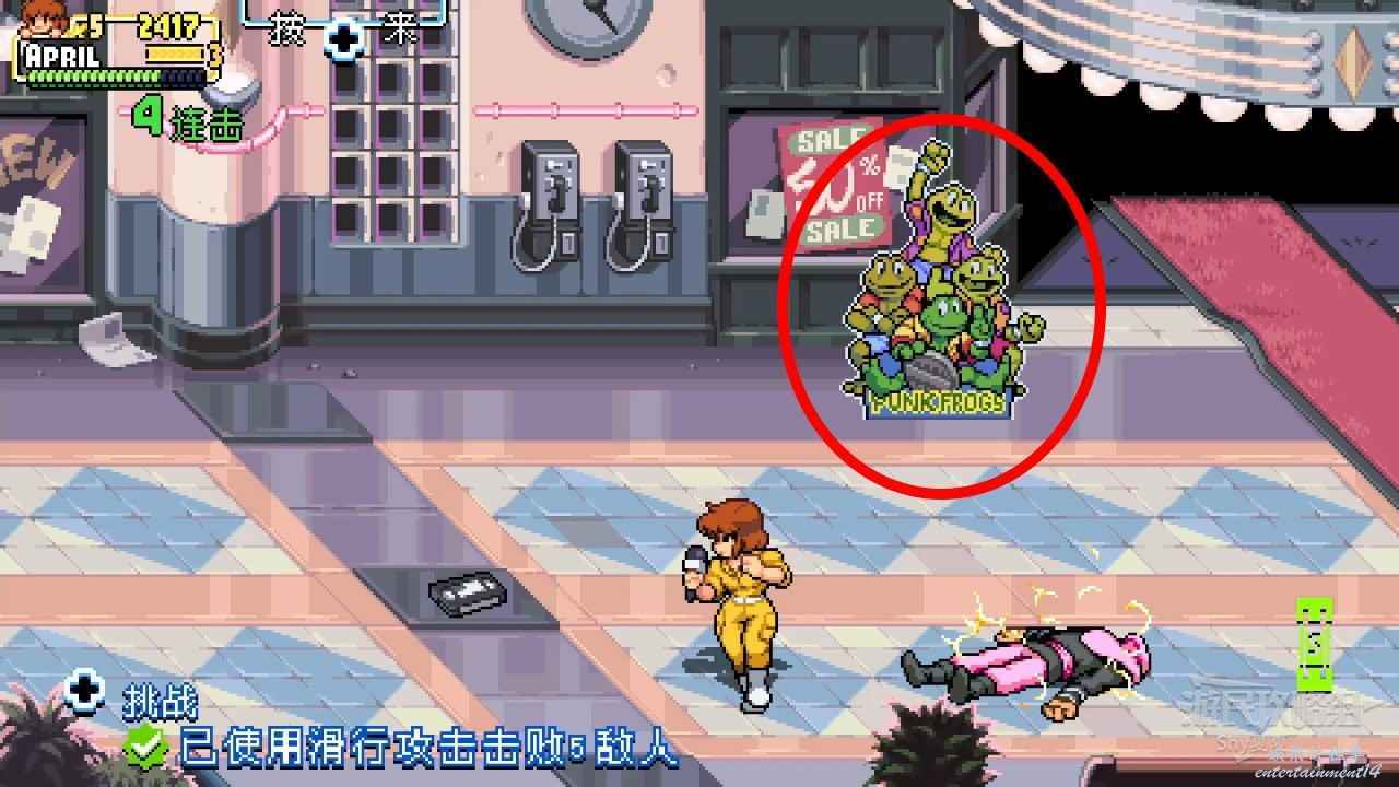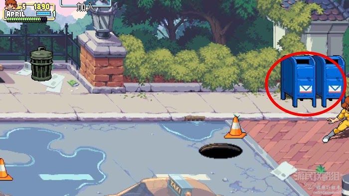 第一個井蓋的旁邊,打破藍色信箱,救下第一隻忍者蛙【亞提拉】(2/4)。