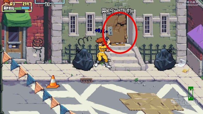 第一個收集品在馬路邊有【TV ZONE】商店右側,攻擊垃圾桶獲得【經典頭條新聞】(1/3)。