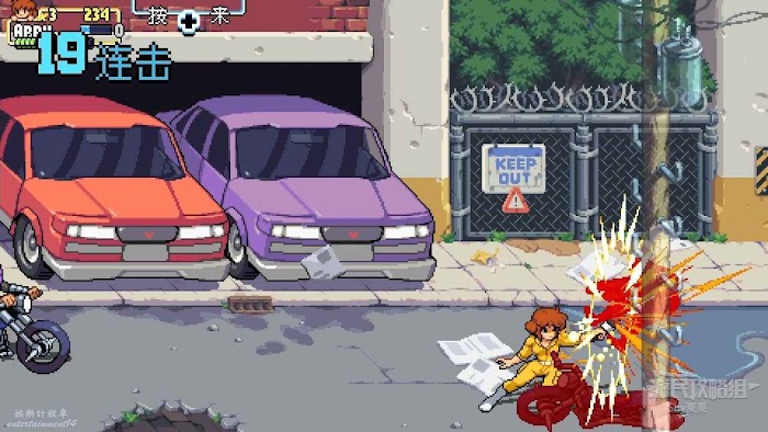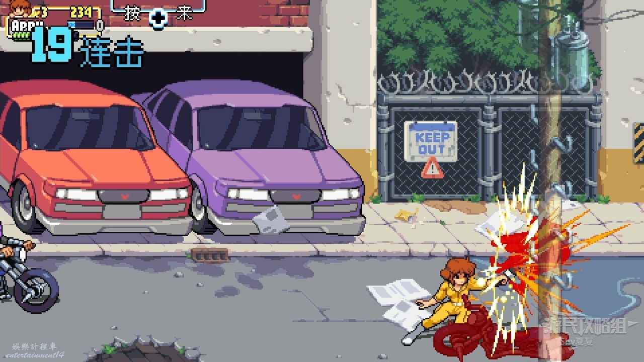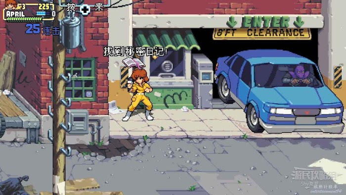 開車紫色大腳忍者:只要走到車前就會開車,應對方法就是走到車前後,馬上後空翻翻回來,就能躲開。