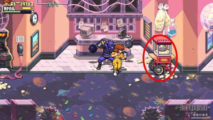 進入水族館前,有一個書報架,破壞之後獲得【頭條新聞】(4/4)。