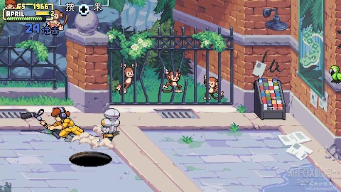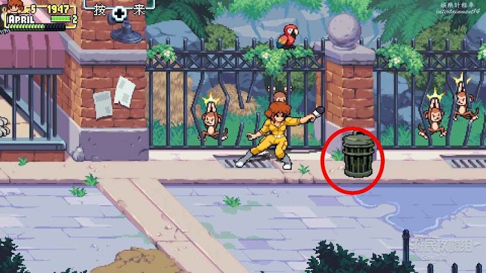 第二個是下圖的猴子籠子旁,猴子會往場景中扔香蕉,這裡戰鬥要速戰速決,香蕉丟過來的不確定性比較高,所以要格外注意。
