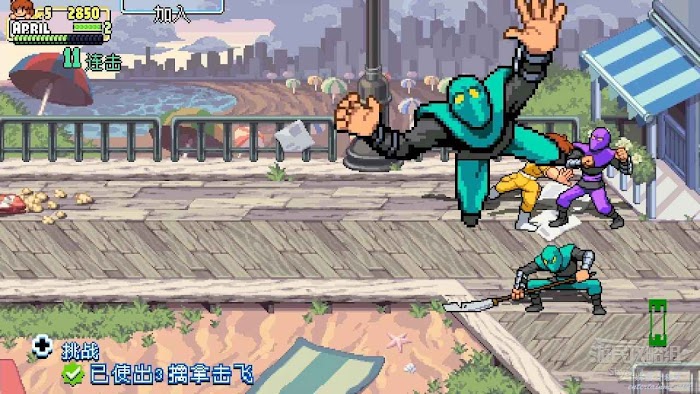 摩托紫色大腳忍者:沖我方沖過來。應對方法,就是看到螢幕邊緣的提示後,直接飛踹,或者用攻擊距離遠的招式進行攻擊。