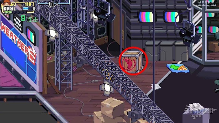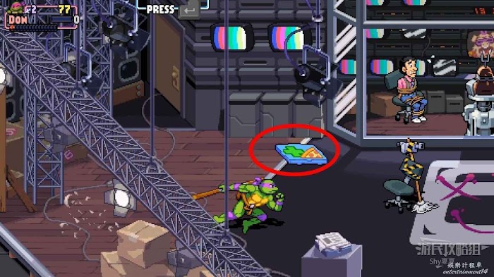 在BOSS戰前,會看到一盒披薩,披薩旁邊有一個印著大腳標記的木箱,打破木箱獲得【經典頭條新聞】(2/2)。