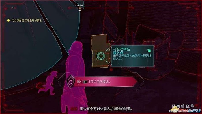 繼續前進,掃描門旁的控制器,讓火箭駭入。