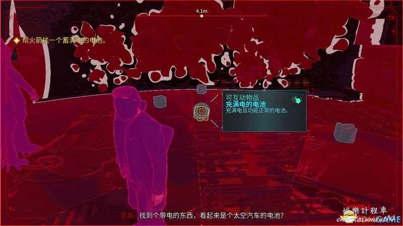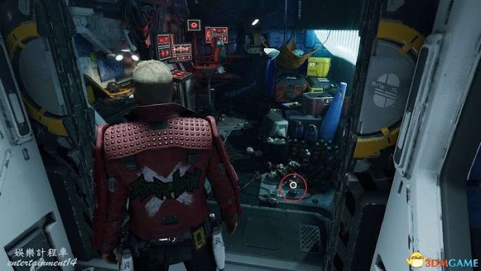 例如剛出門時右轉,火箭的房間裡,地上紅圈處就是一個收集品。