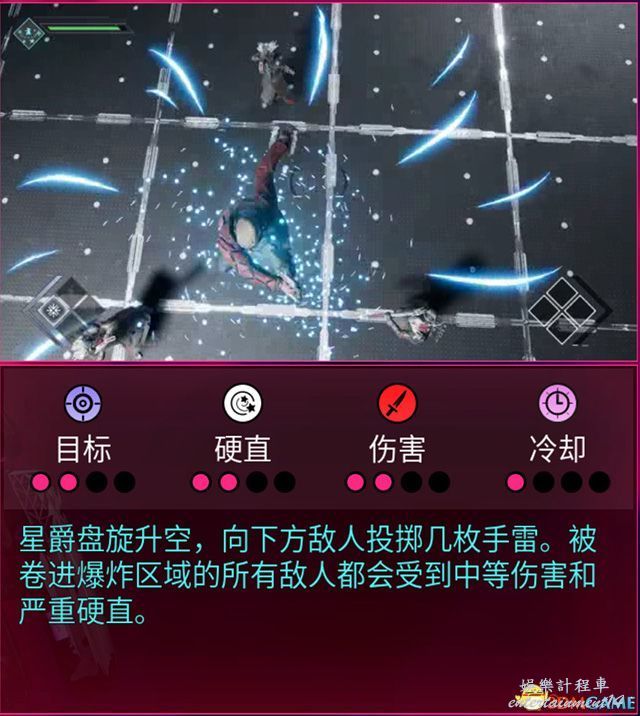 支線aoe,需要玩家對戰場局勢有一定認知,儘量沖到關鍵敵人,造成硬直。