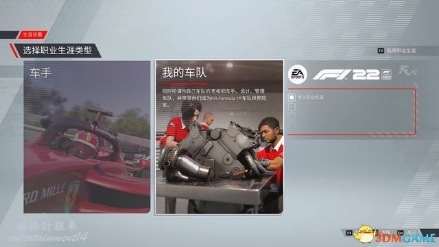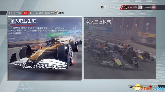 注意:單人生涯分為車手模式和車隊模式,但雙人生涯僅能選擇是否鎖定同個隊伍的車手模式。