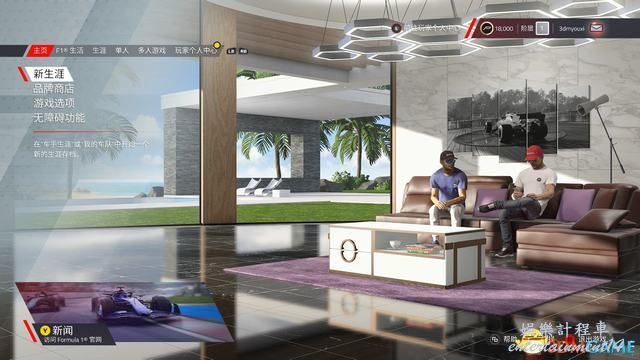 在此可以選擇開始或繼續新的生涯、查看各大廠商的賽車模型、或是進行遊戲的各項設置。