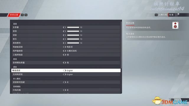 建議在“音訊設置”裡將“解說語言”與“無線電語言”改為英語,相對更還原一些。