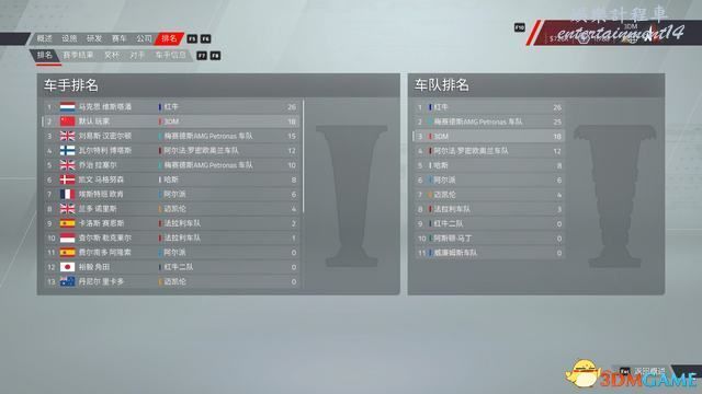 但因為賓士隊兩名選手共獲得了25分所以車隊排名第三。