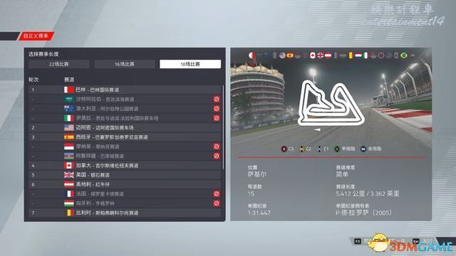 遊玩的賽道數量決定了整個賽季的長短,為體驗遊戲內容建議不要對此進行修改。