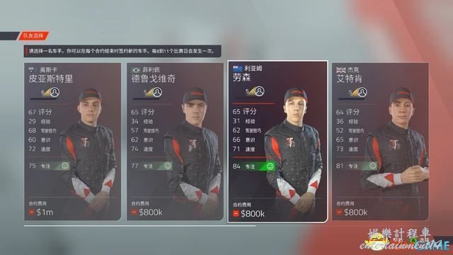 注意:當前車手合約期滿前是無法進行雇傭或交換的。