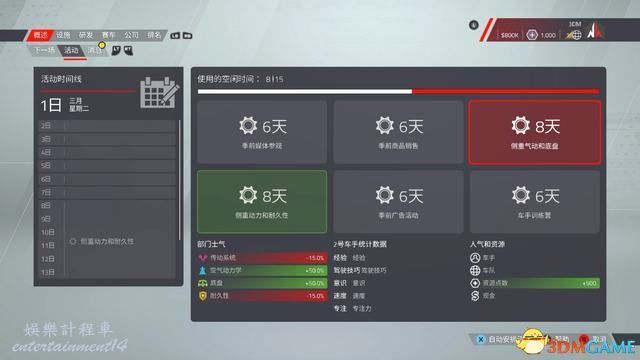 各項日程所需的時間與加成各不相同,建議初期先選擇扎實提升車輛性能和車隊人氣。