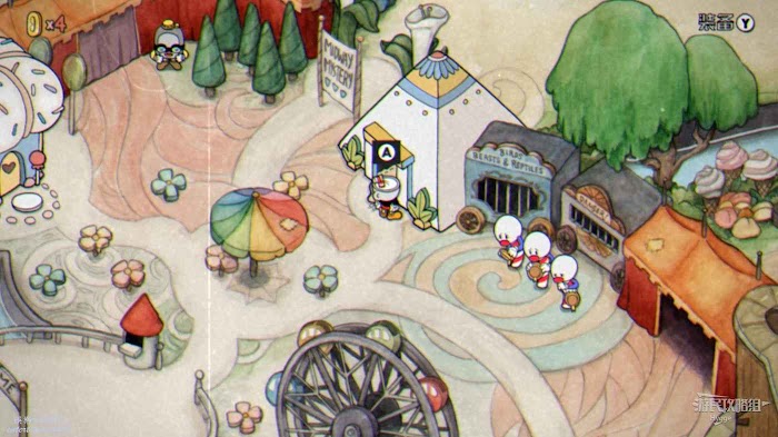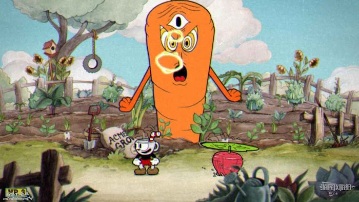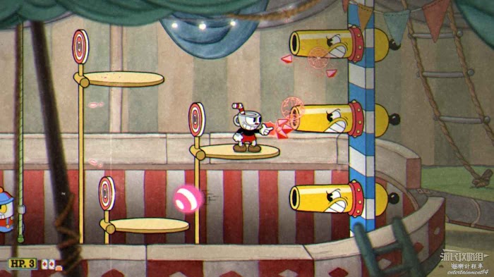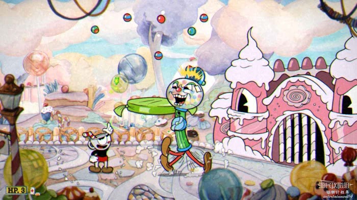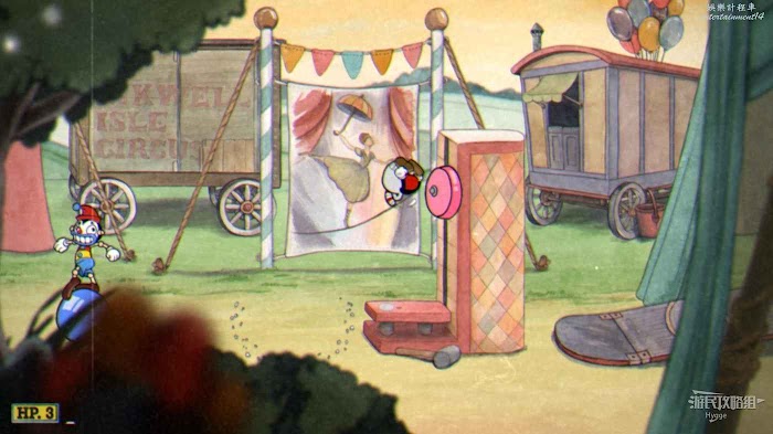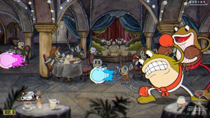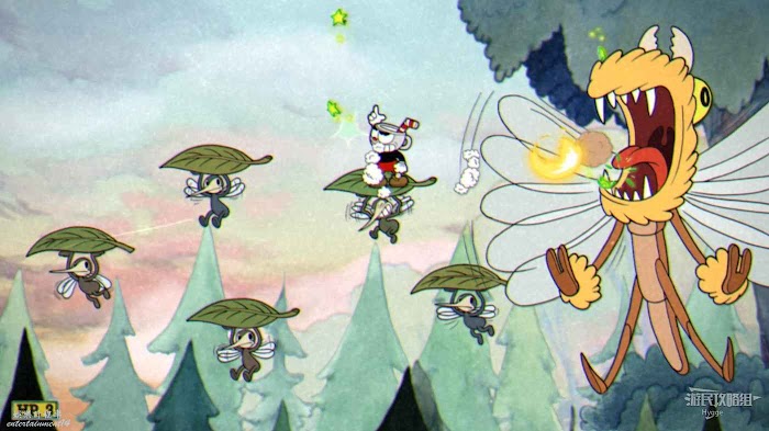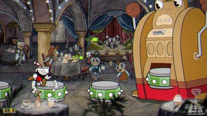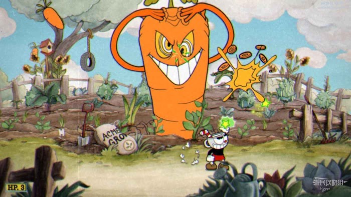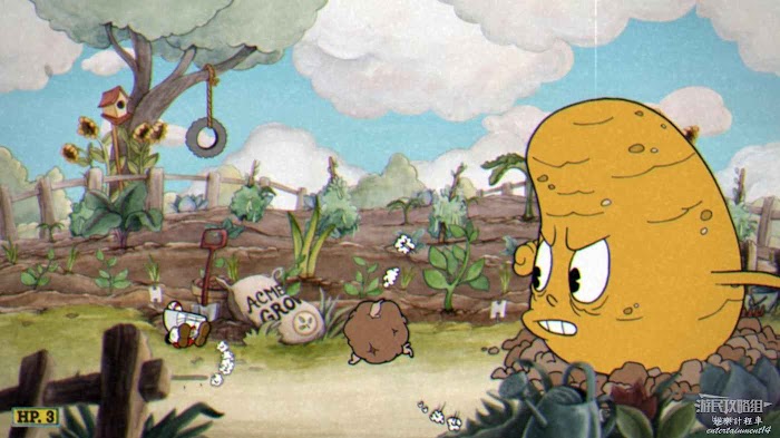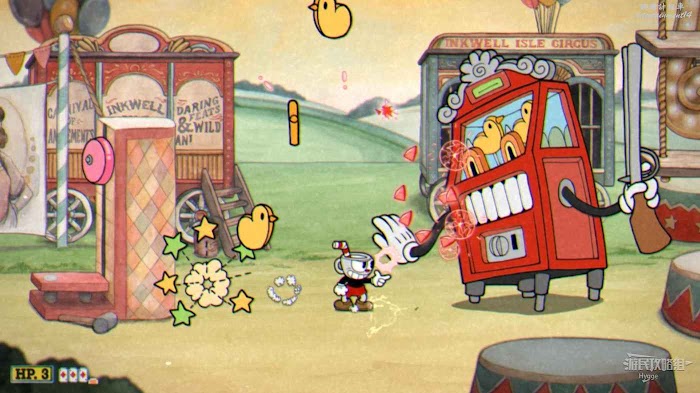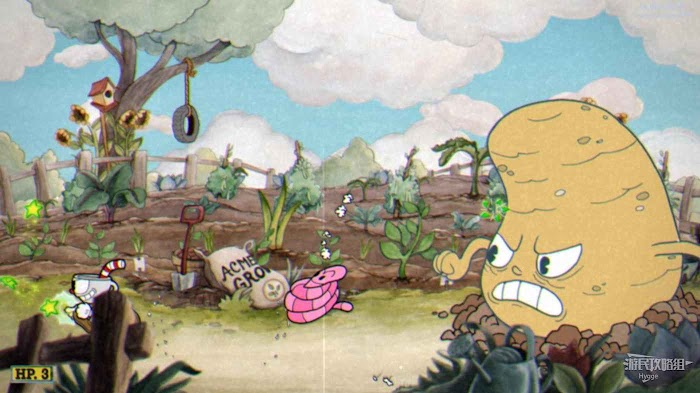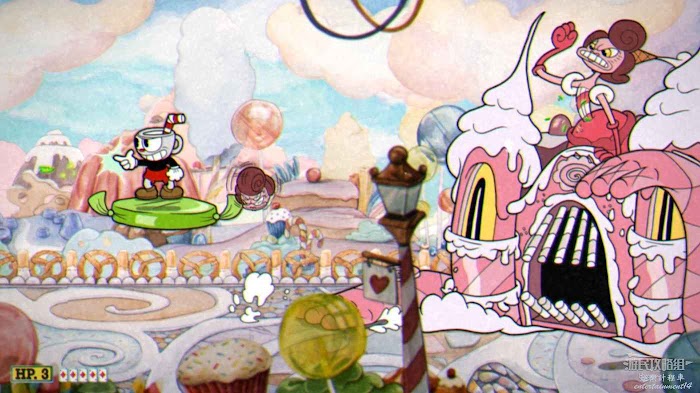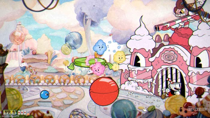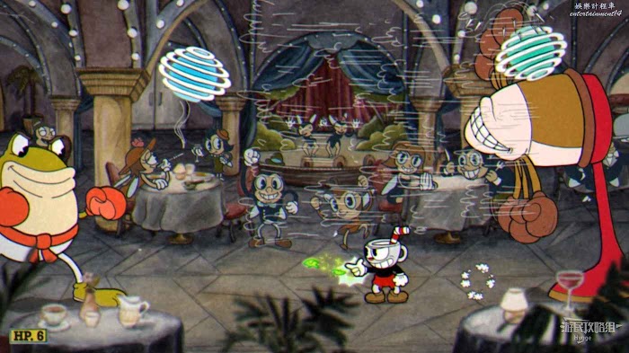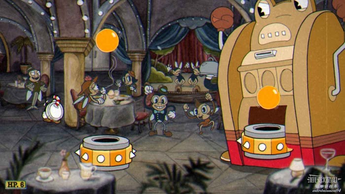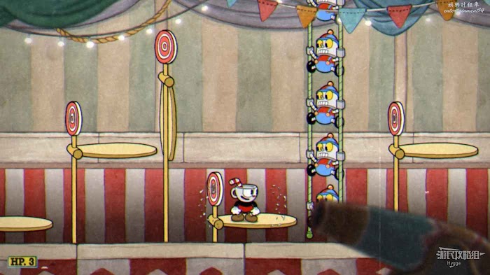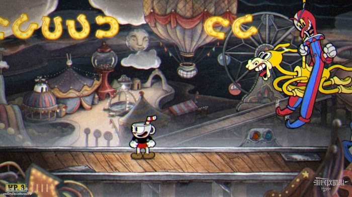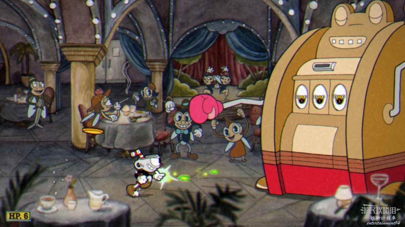 隨後利比會變成電風扇將我們吹向呱呱,呱呱則會不斷扔出彈跳的圓球攻擊。向上和向下扔出的球彈跳的軌跡會略有不同,注意躲避的同時攻擊利比和呱呱叫即可。