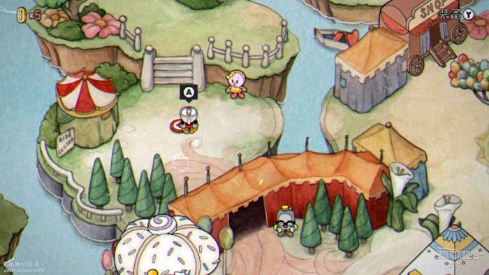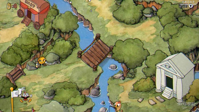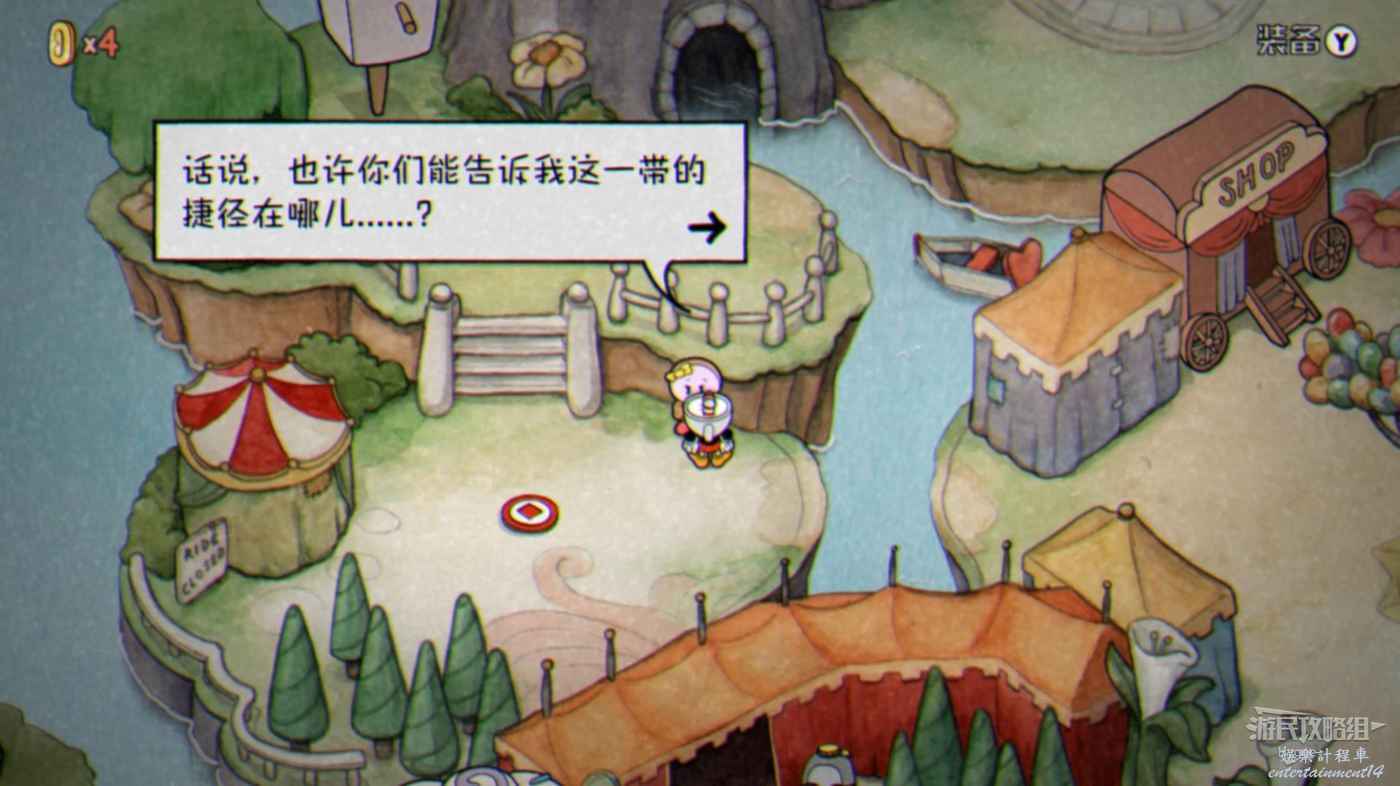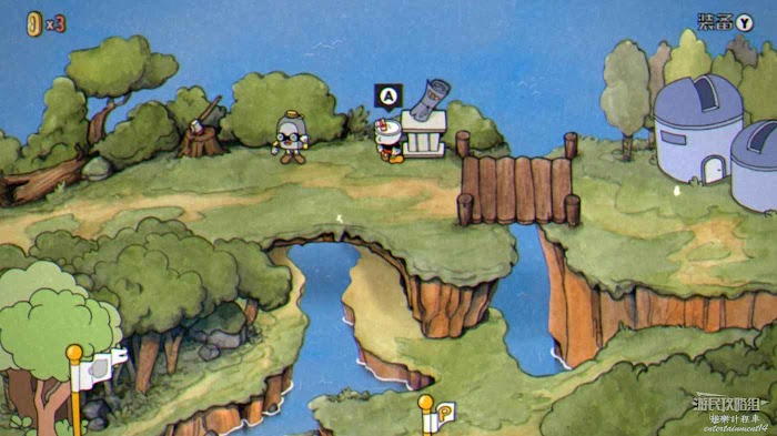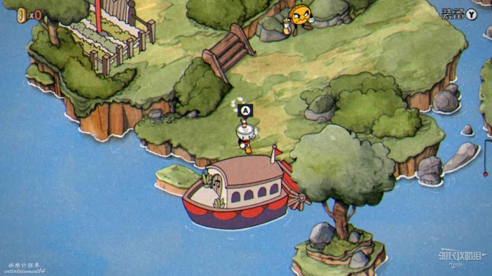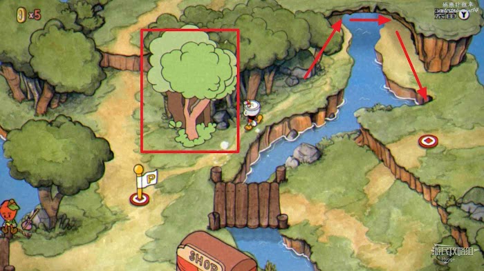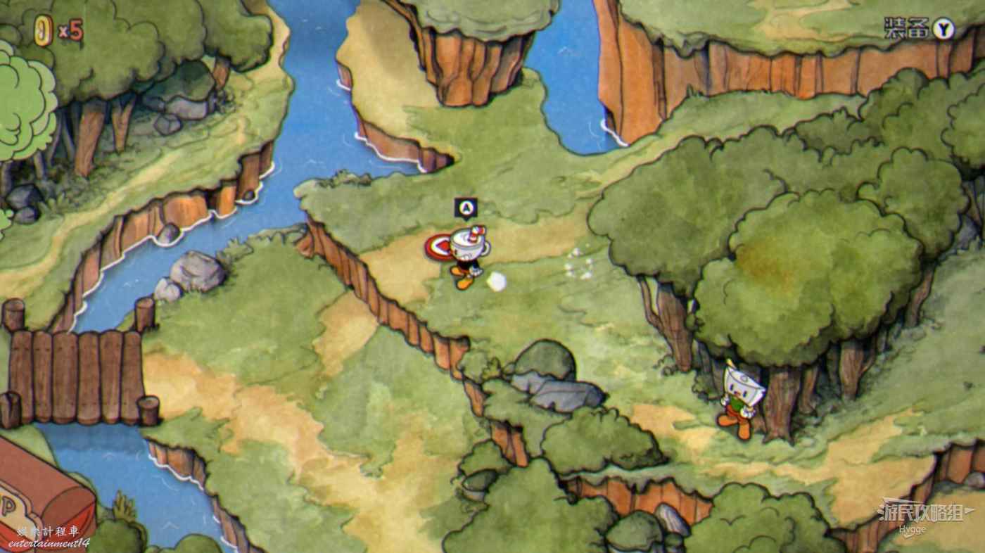 從前方的橋下到達對岸可以解鎖一個新的成就。與旁邊的樹互動進入該關卡。