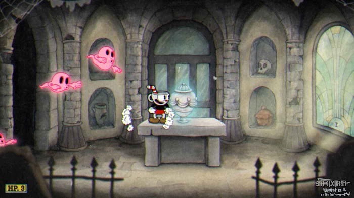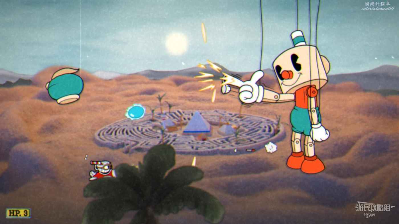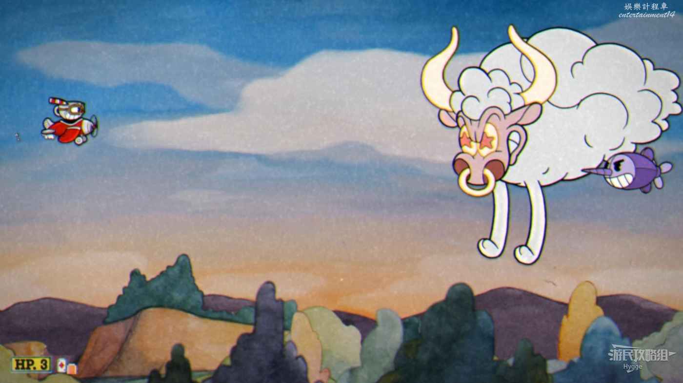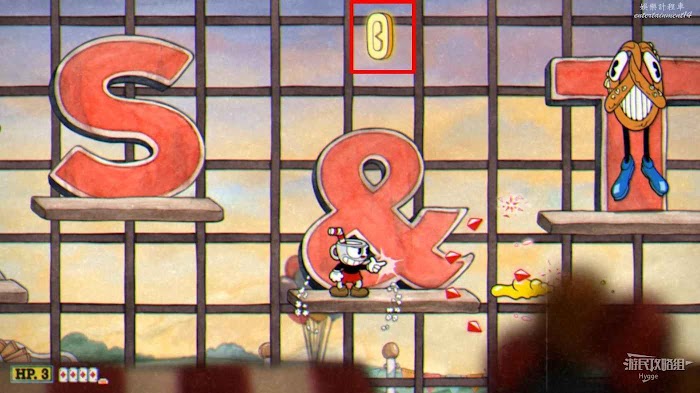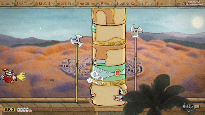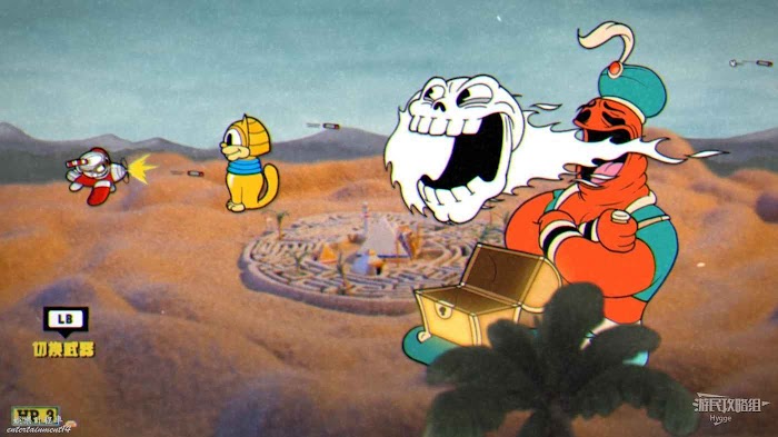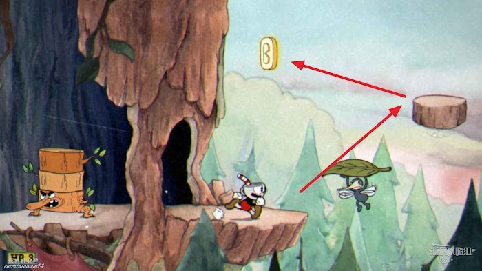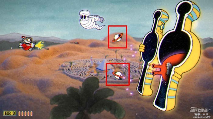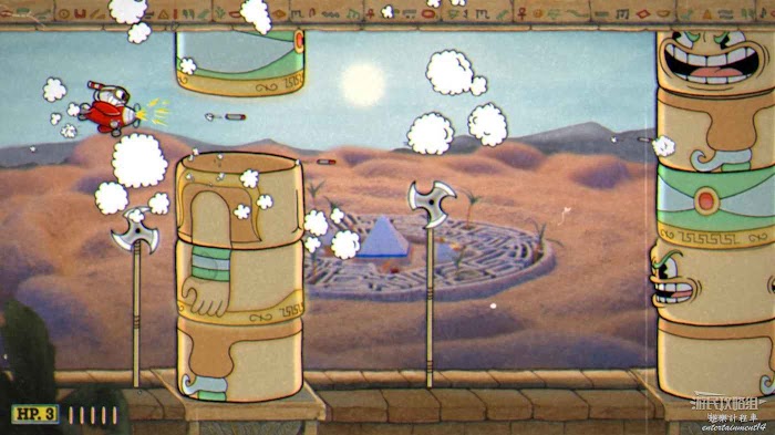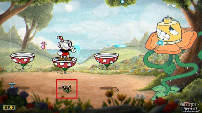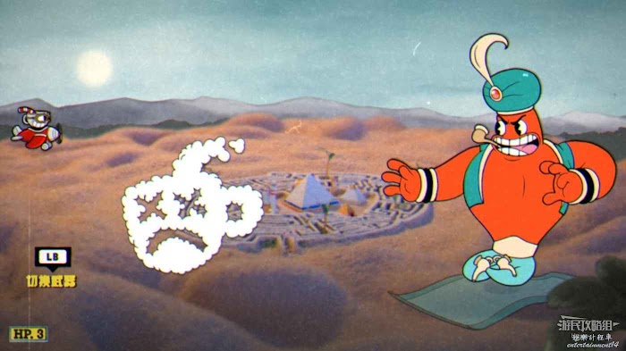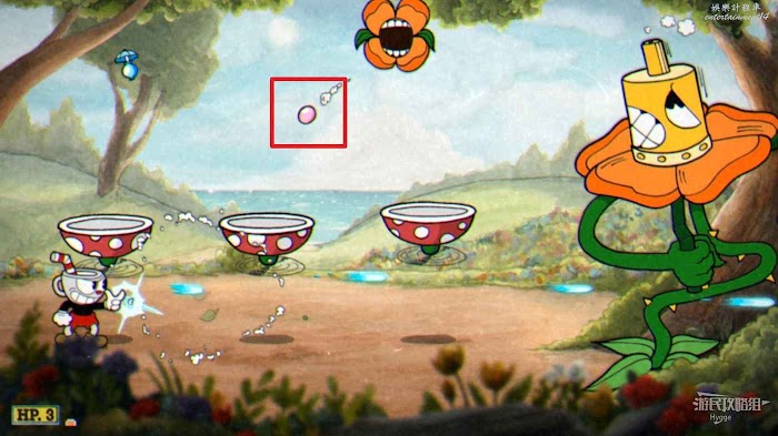 該關卡中的敵人是【神靈基彌】,基彌會像我們發射一個茶杯頭煙霧進行攻擊。