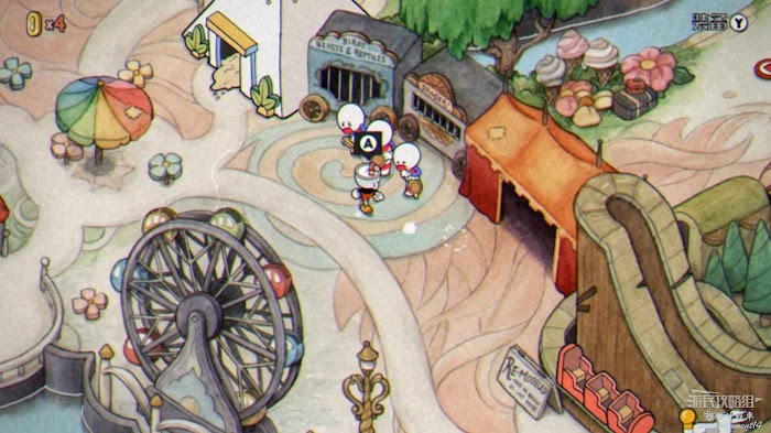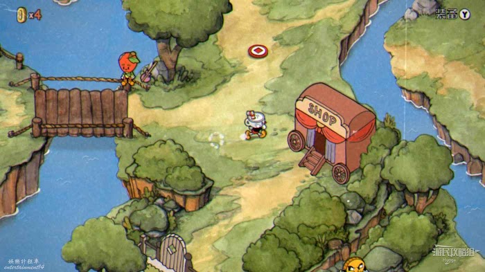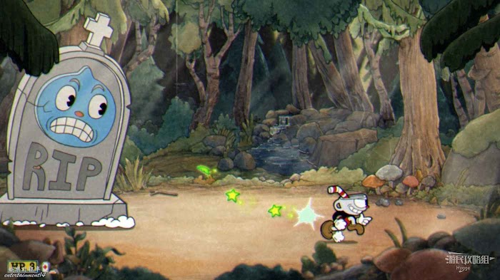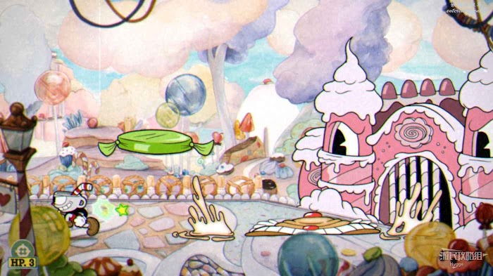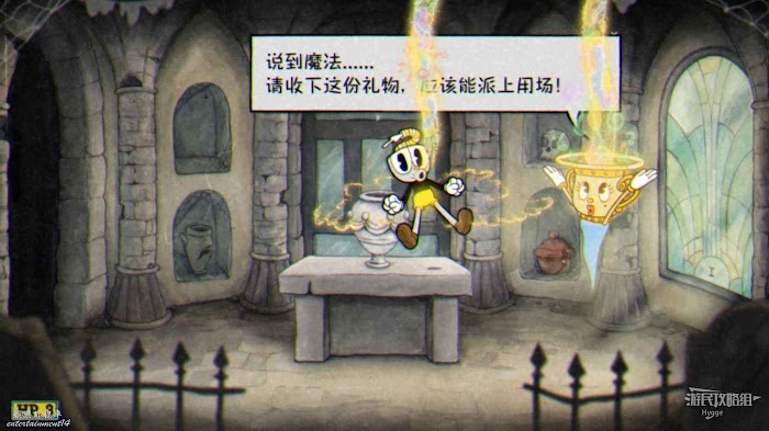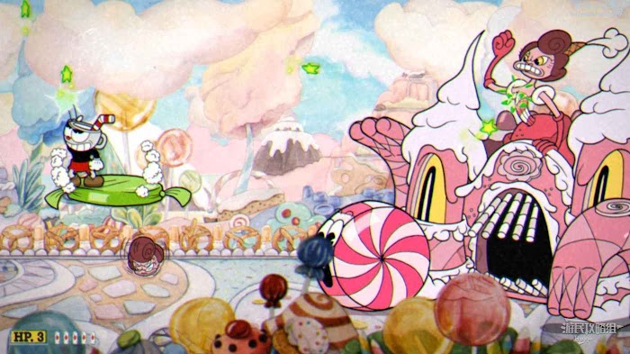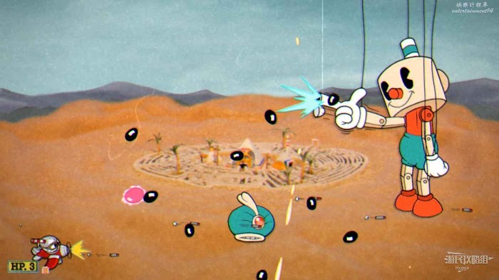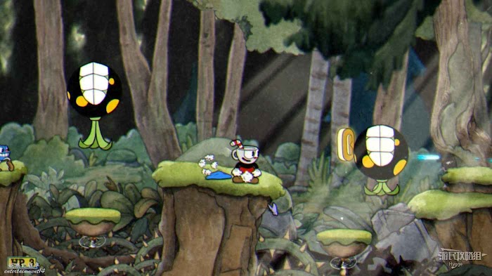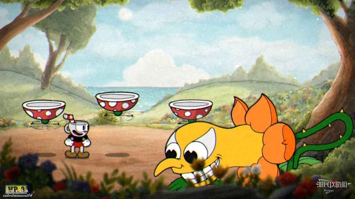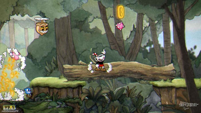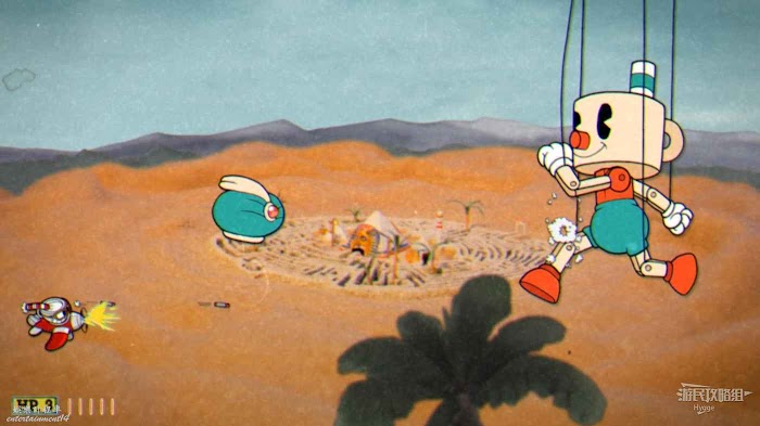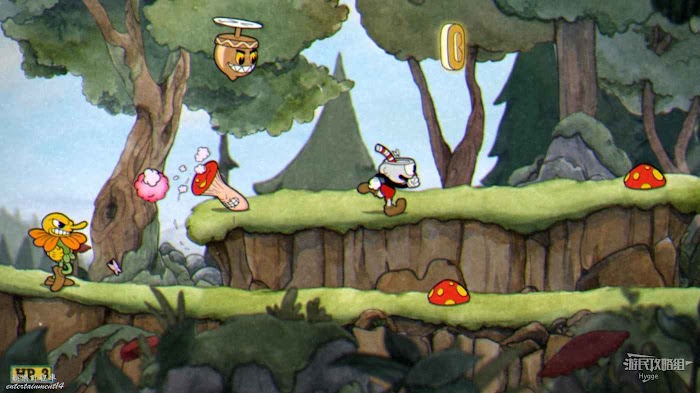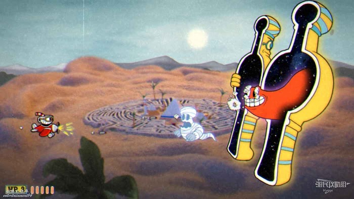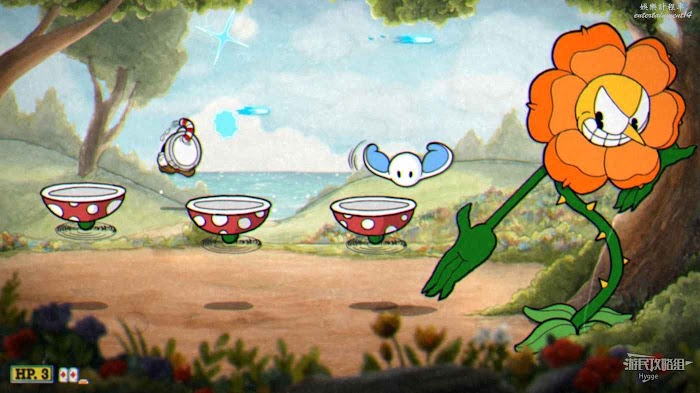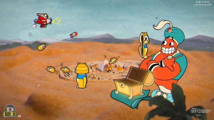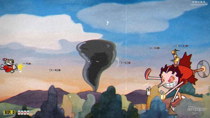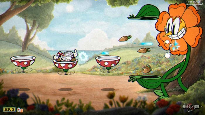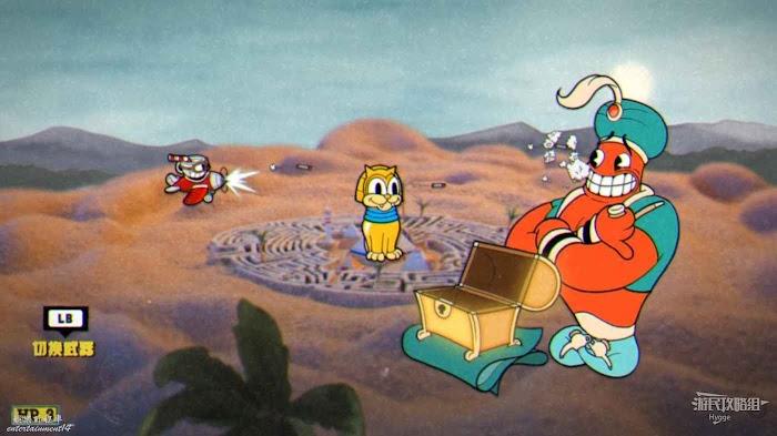 該關卡中的敵人是【神靈基彌】,基彌會像我們發射一個茶杯頭煙霧進行攻擊。