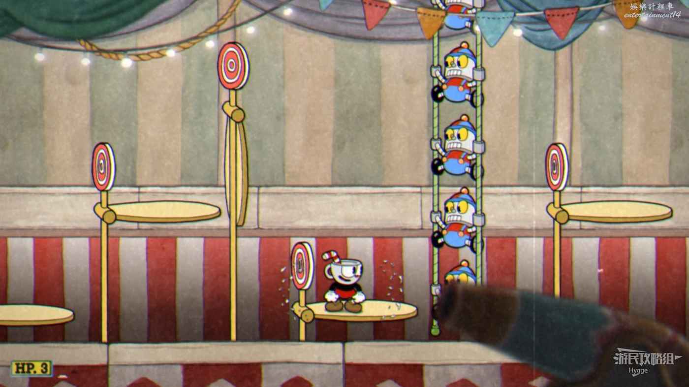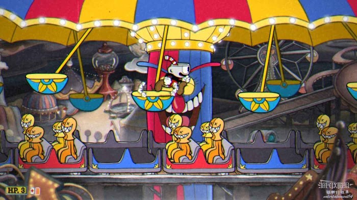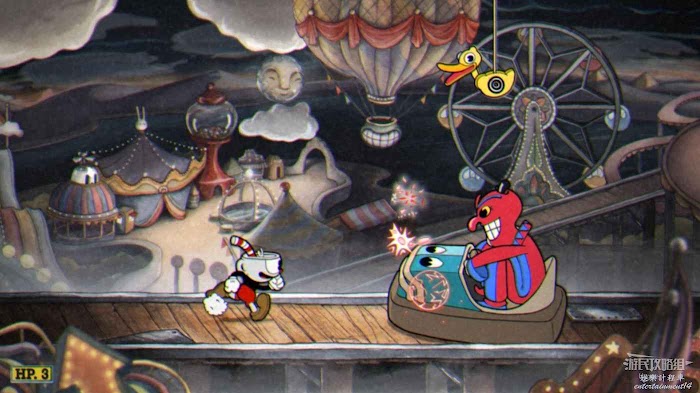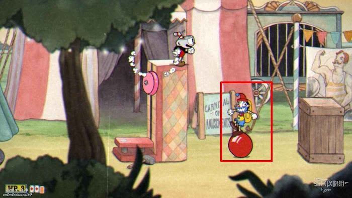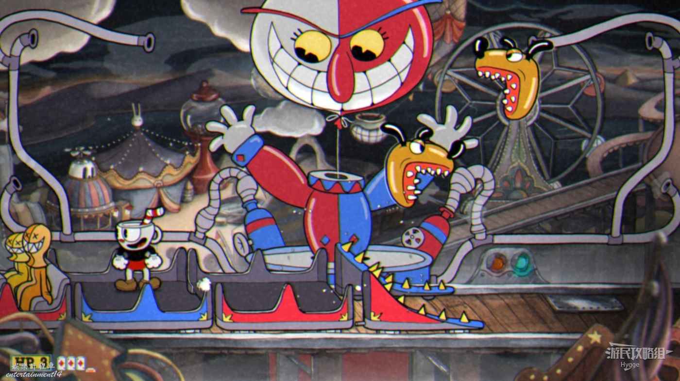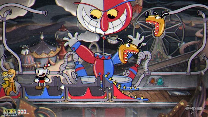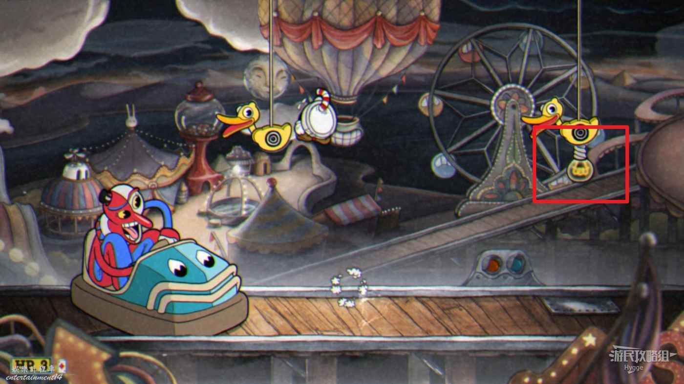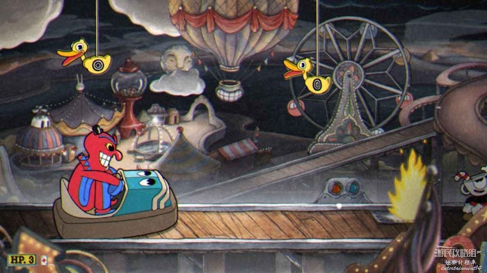 該關卡的BOSS是一個小丑,小丑在戰鬥初會駕駛碰碰車在軌道上扭動,同時上方會不斷飄過繩子懸掛著的小鴨子。