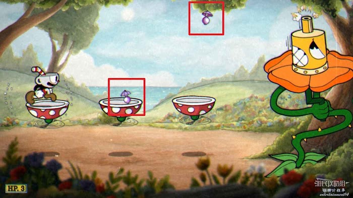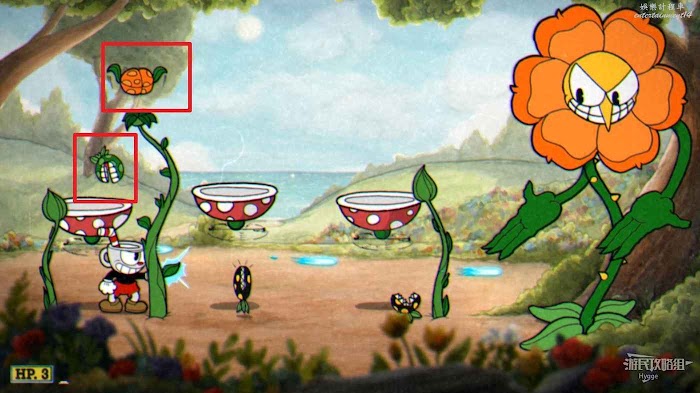 而橙色的花則會在空中左右移動,並發射子彈進行攻擊。