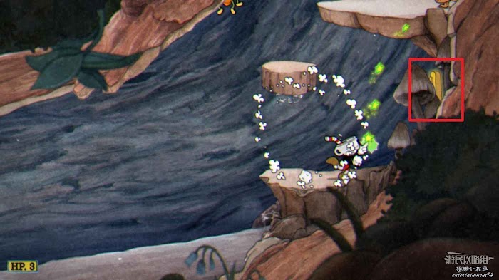 跳至粉色物體處時再次按下跳躍鍵即可進行格擋拍擊,在空中再次跳躍進行跳躍,連續三次後通過此處。