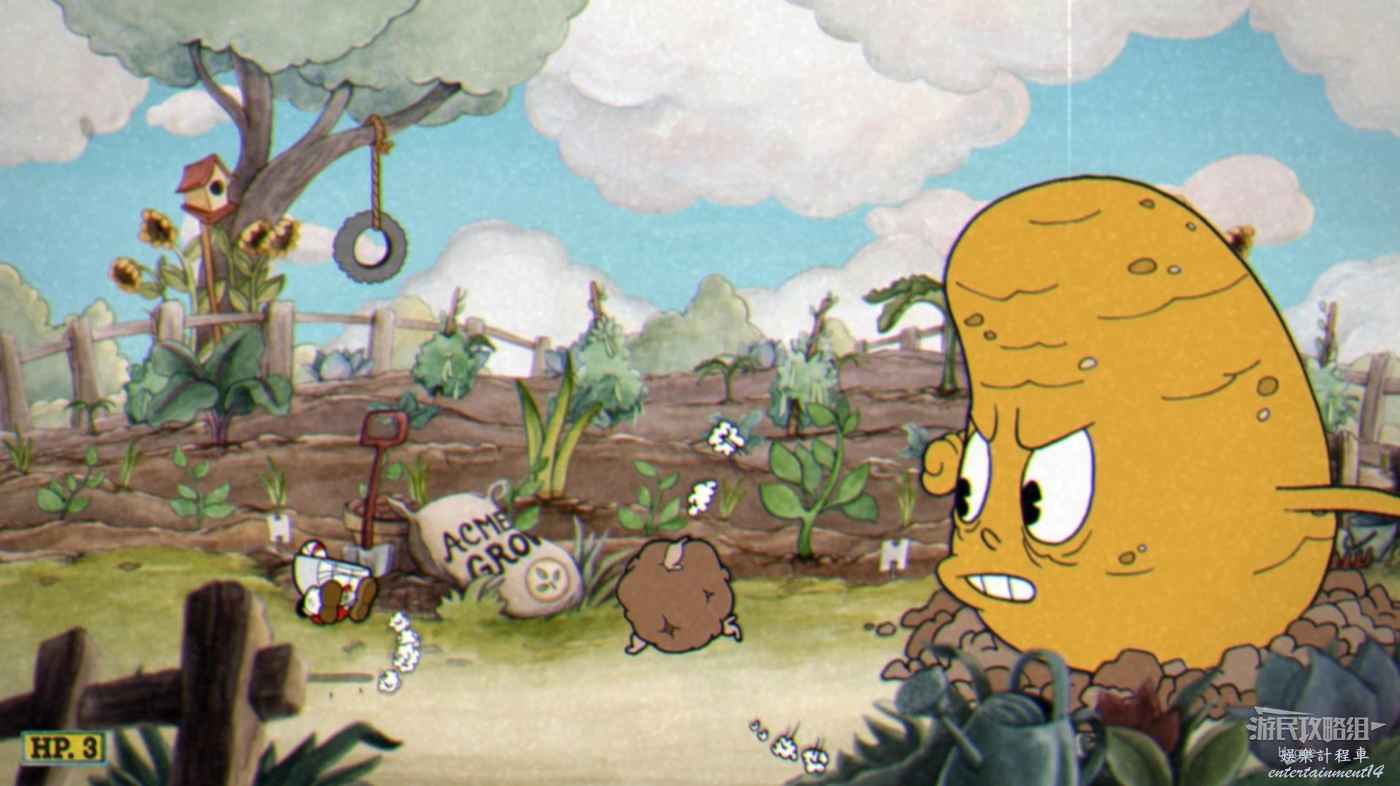 第一階段的敵人是土豆,土豆會連續向前吐出3個泥團和1只蚯蚓。