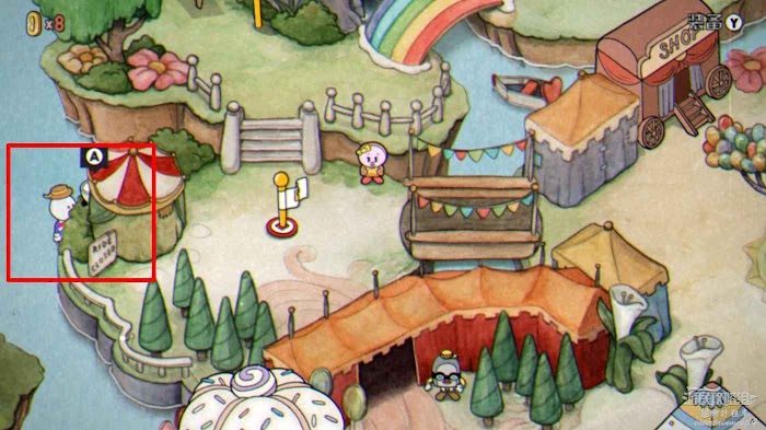 與斧子人旁邊的花叢互動即可進入該關卡。
