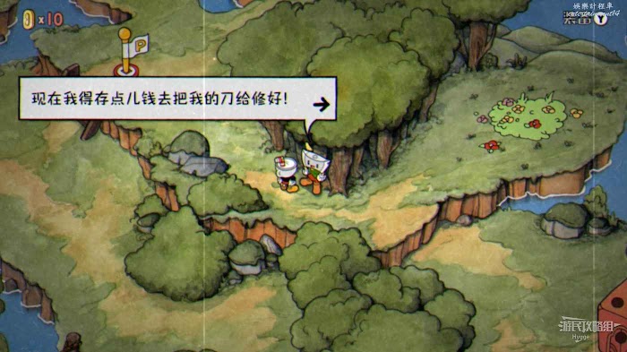 擊敗花後我們已經通關了1號島上的全部關卡,來到斧頭人處會發現他稍微移動了一點位置。在他旁邊的樹林中可以找到1枚金幣。