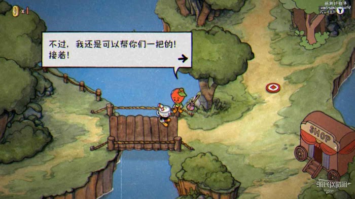 來到1號後與坐在木橋上的蘋果交談即可獲得3枚金幣。