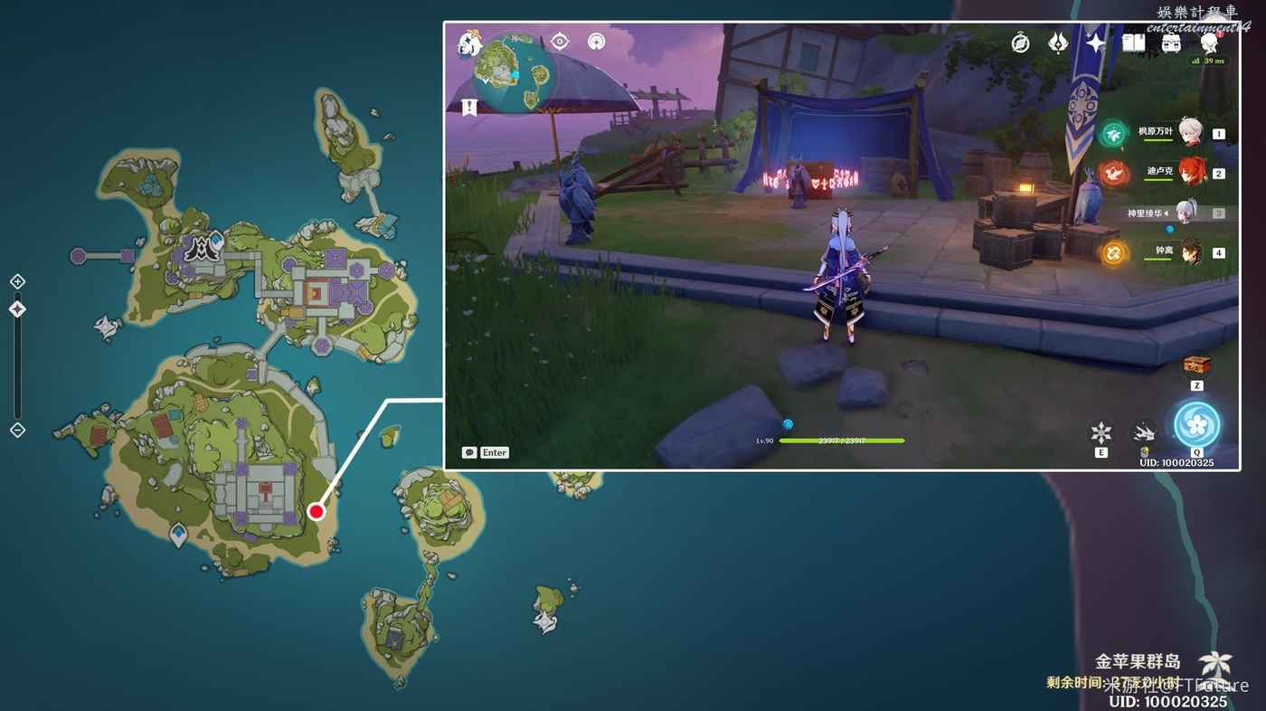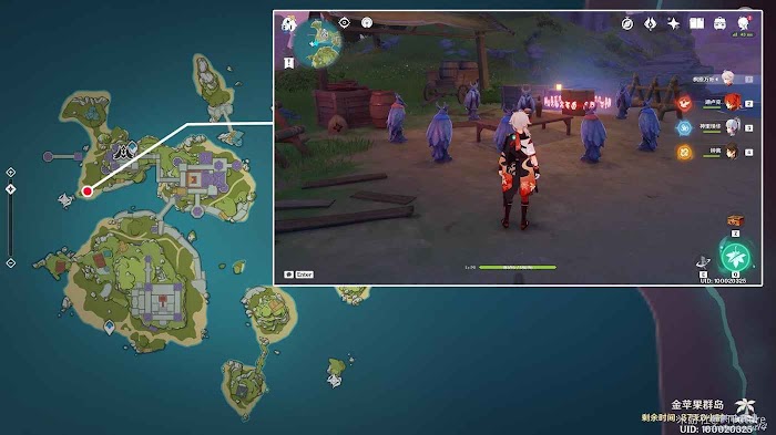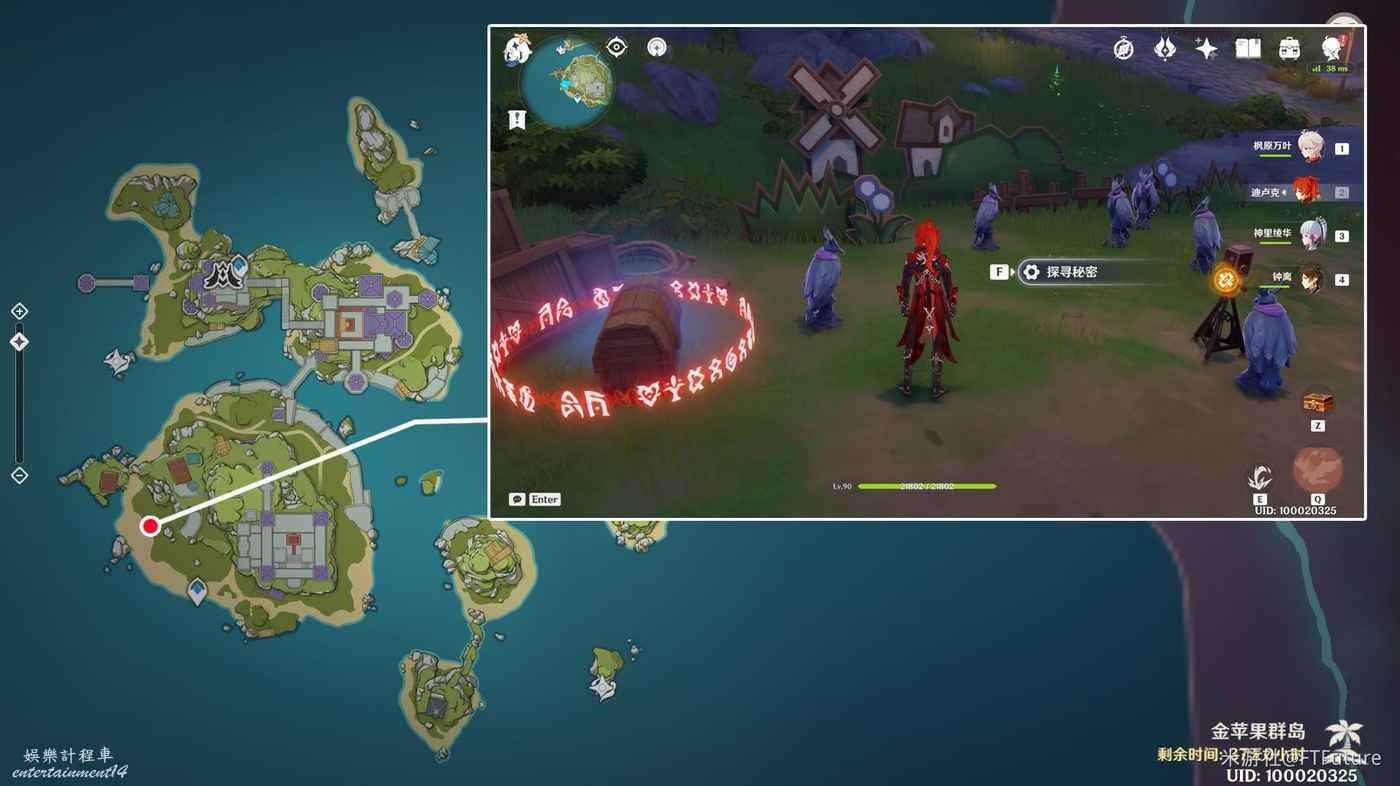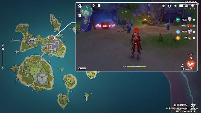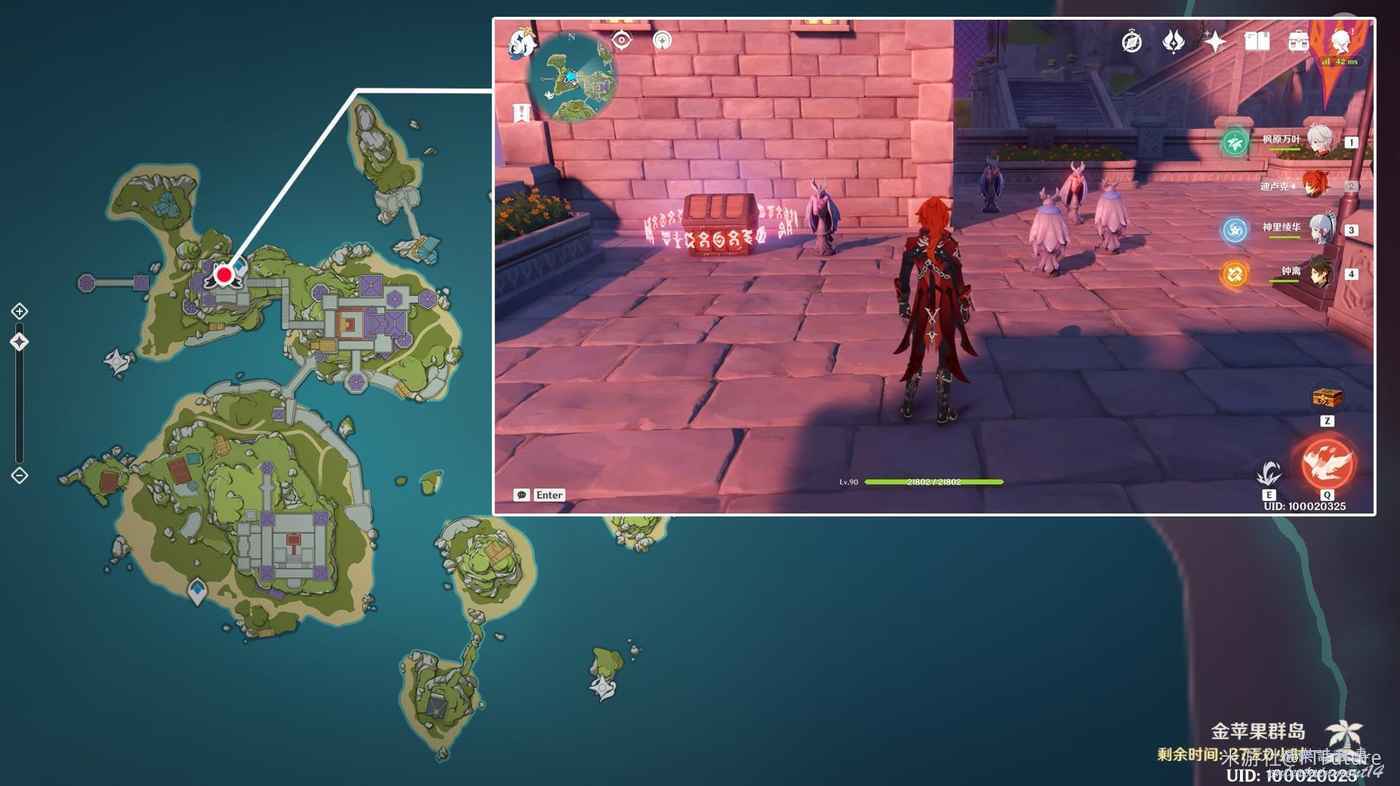 注意,這裡由於雕像們站的很近,直接過去選無法分辨出哪個選項對應哪個角色,很容易選錯,建議來我下圖的位置,貼著牆一點點挪到只能選到“盜寶團「呱」”的位置再進行指認。