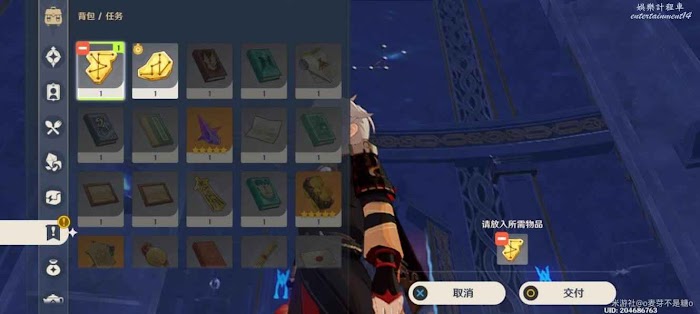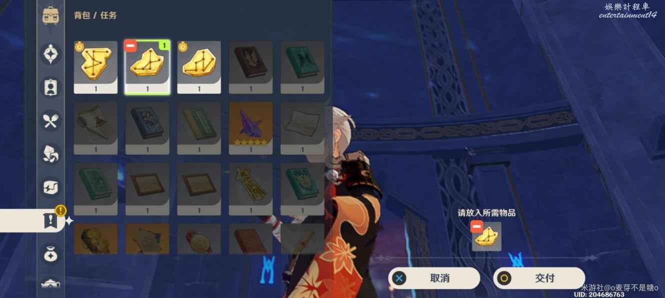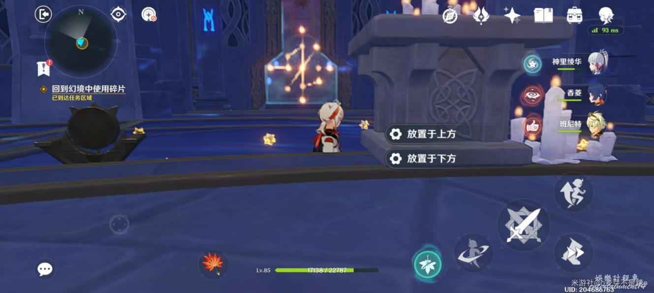 然後這裡是碎片的點位,注意這裡原本有個丘丘人,被我手快打掉了,調查一下獲得碎片,回到水占盤,再次進入秘境