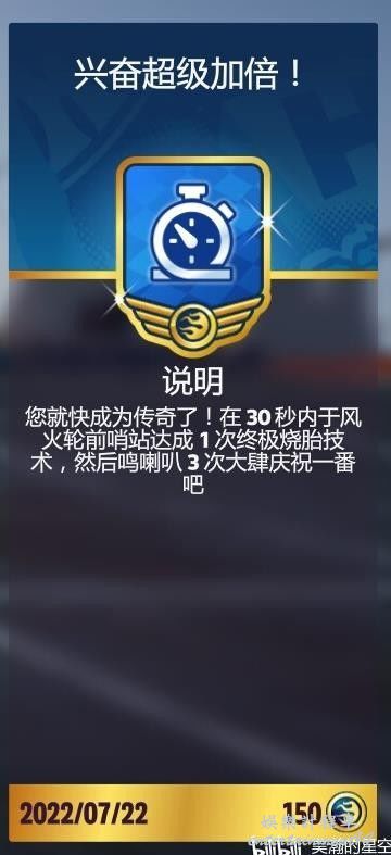 挑戰內容:在30秒內於風火輪哨站完成一次終極燒胎後鳴笛三次。