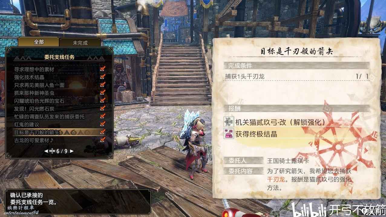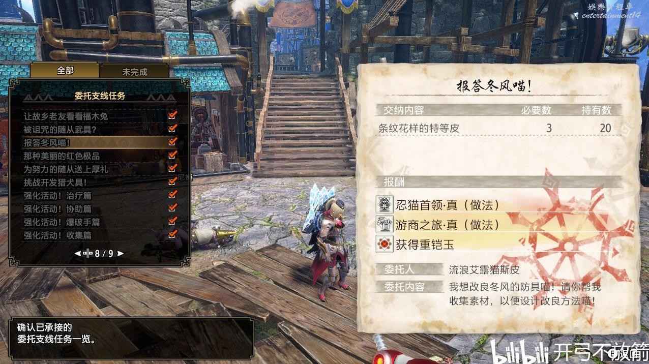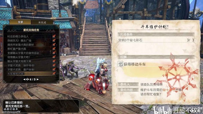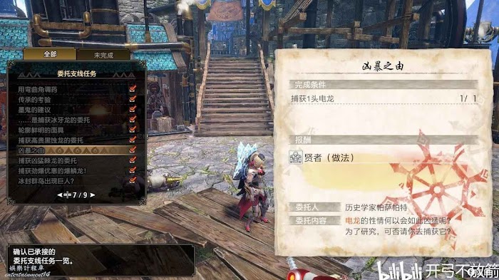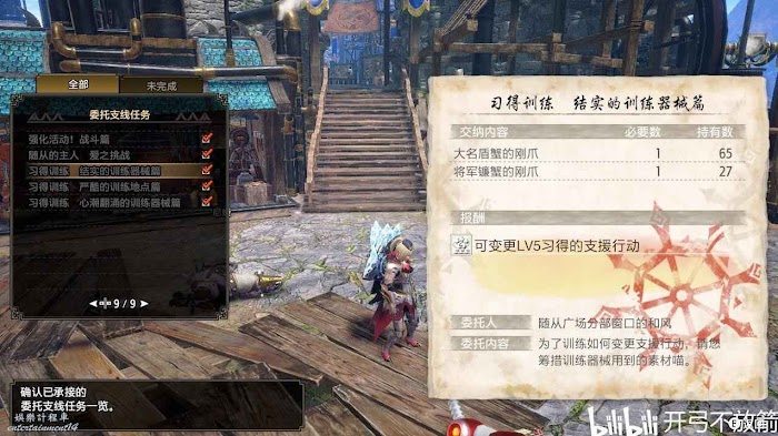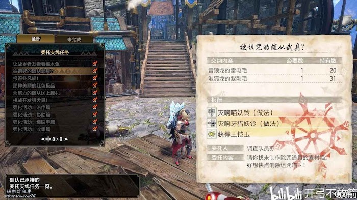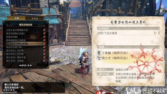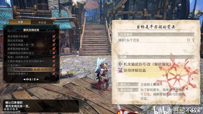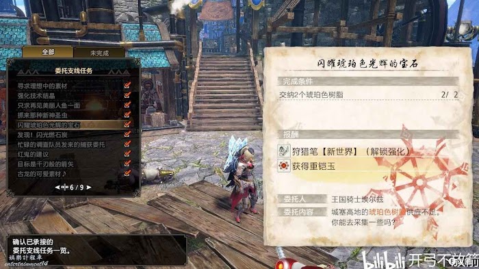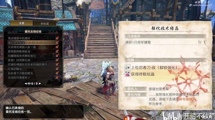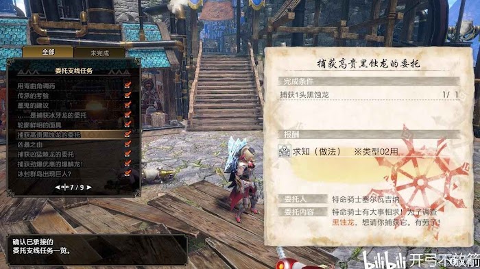 2.武器方面的委託需要達成開啟前置關鍵素材才能順利開啟委託,例如:領取捕獲冰魚龍的委託需要有一條旗魚以開啟魚骨弓這個武器分支,今天知道的熱知識!