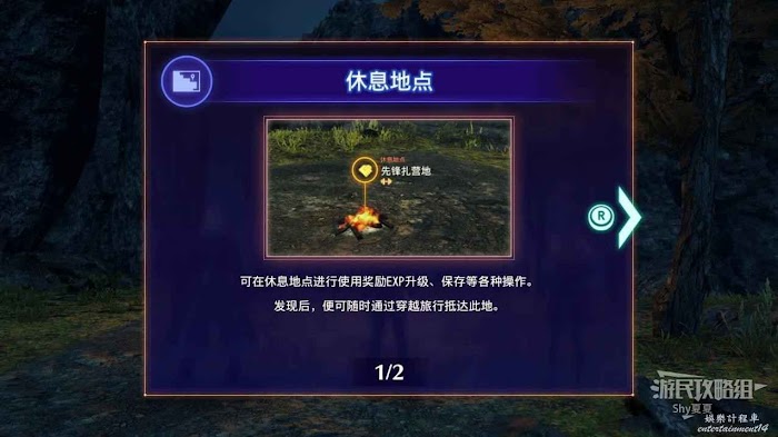 繼續前進,就會看到休息地點,這裡可以進行保存,以及EXP升級。