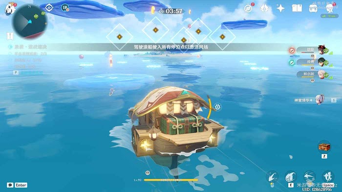先讓我們來看看玩法,我們需要開船駛入海域,當所有浪船停泊在專用停車位時,就可以形成風場,吃掉金幣和打敗丘丘人即可。
