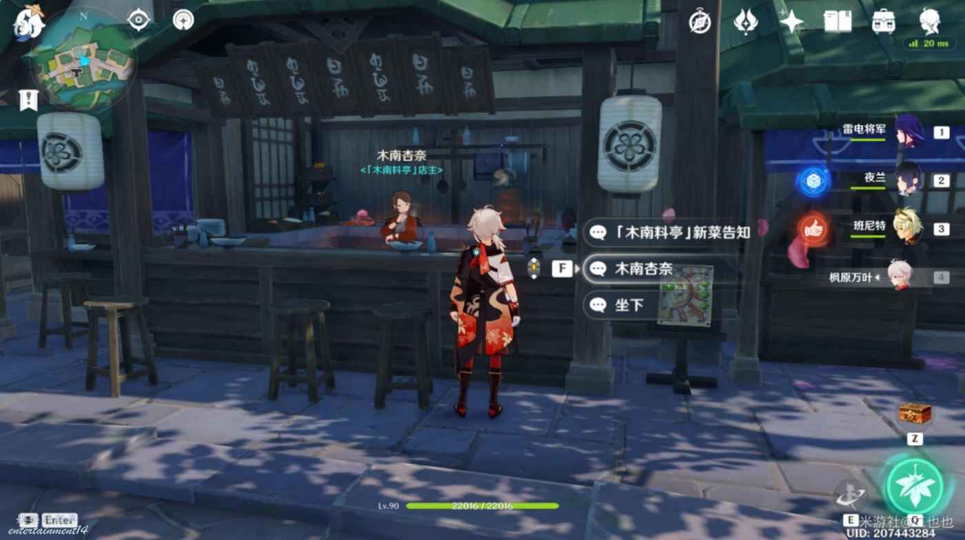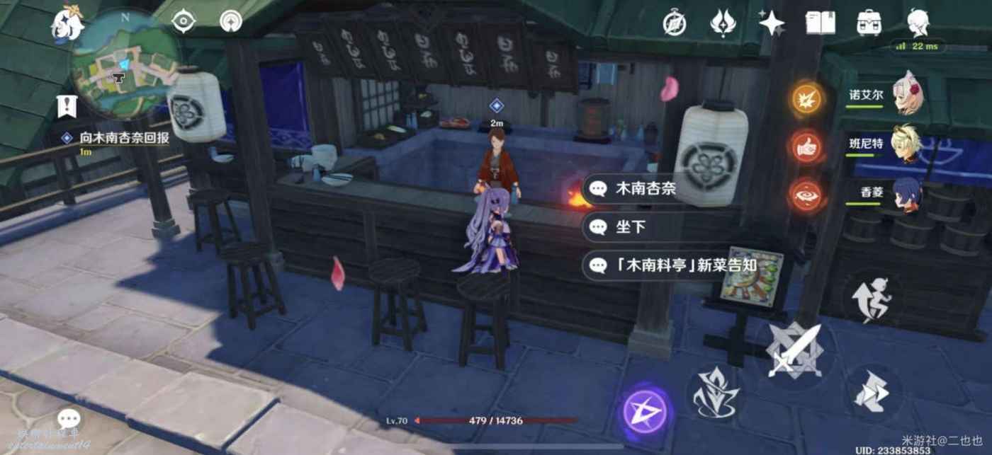 原神 (Genshin Impact) 異國的披薩任務攻略 11 8 月 2022-08-11 廣告 作者:二也也 來源:米遊社論壇 任務觸發 傳送稻妻城錨點,前往「木南料亭」 與木南杏奈對話接取任務 任務流程 1.與梨繪對話 傳送稻妻城錨點 往手工藝品店走,在小倉屋門口與梨繪對話。 2.向木南杏奈回報 返回「木南料亭」與木南杏奈對話 3.將堇瓜帶回給木南杏奈 交付木南杏奈一個堇瓜 與木南杏奈對話,對話結束即任務完成 稻妻城的烹飪位置 完成「雪鶴之章·第一幕」(神裡淩華傳說任務)時可以來這烹飪