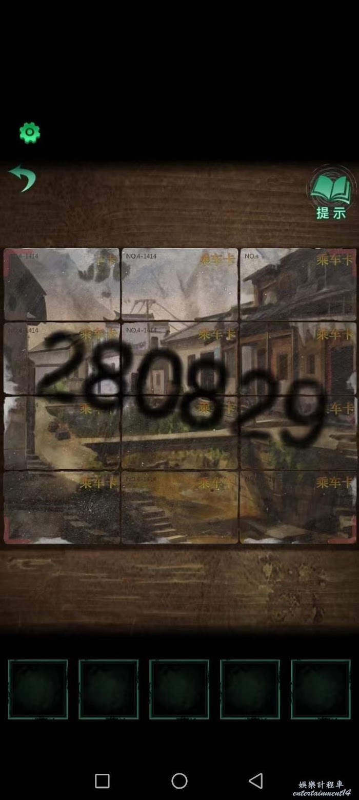 11、把紙錢給售票處,買一張公交卡,然後進房間,把給的公交卡放在桌子上,開始玩拼圖遊戲(注意,四個角的公交卡有標記);然後獲得密碼280829;