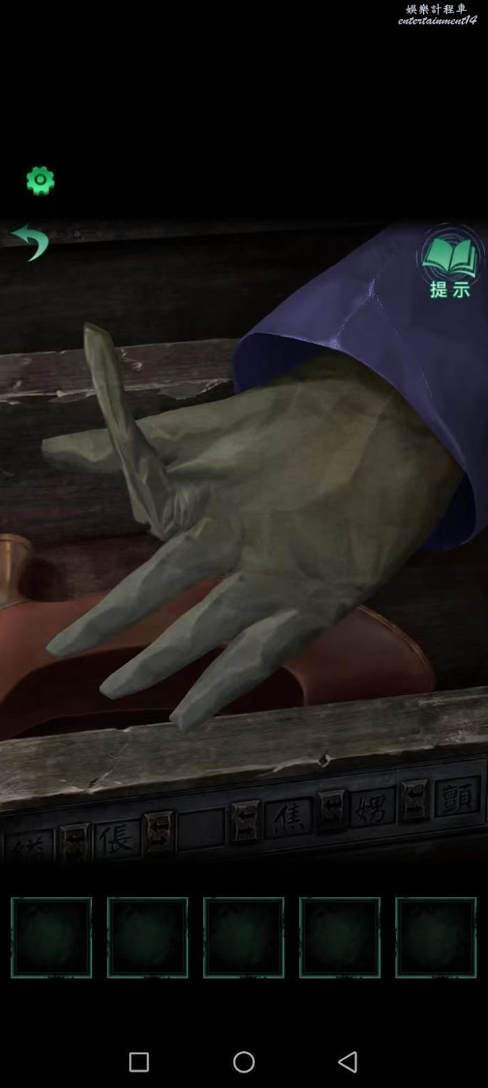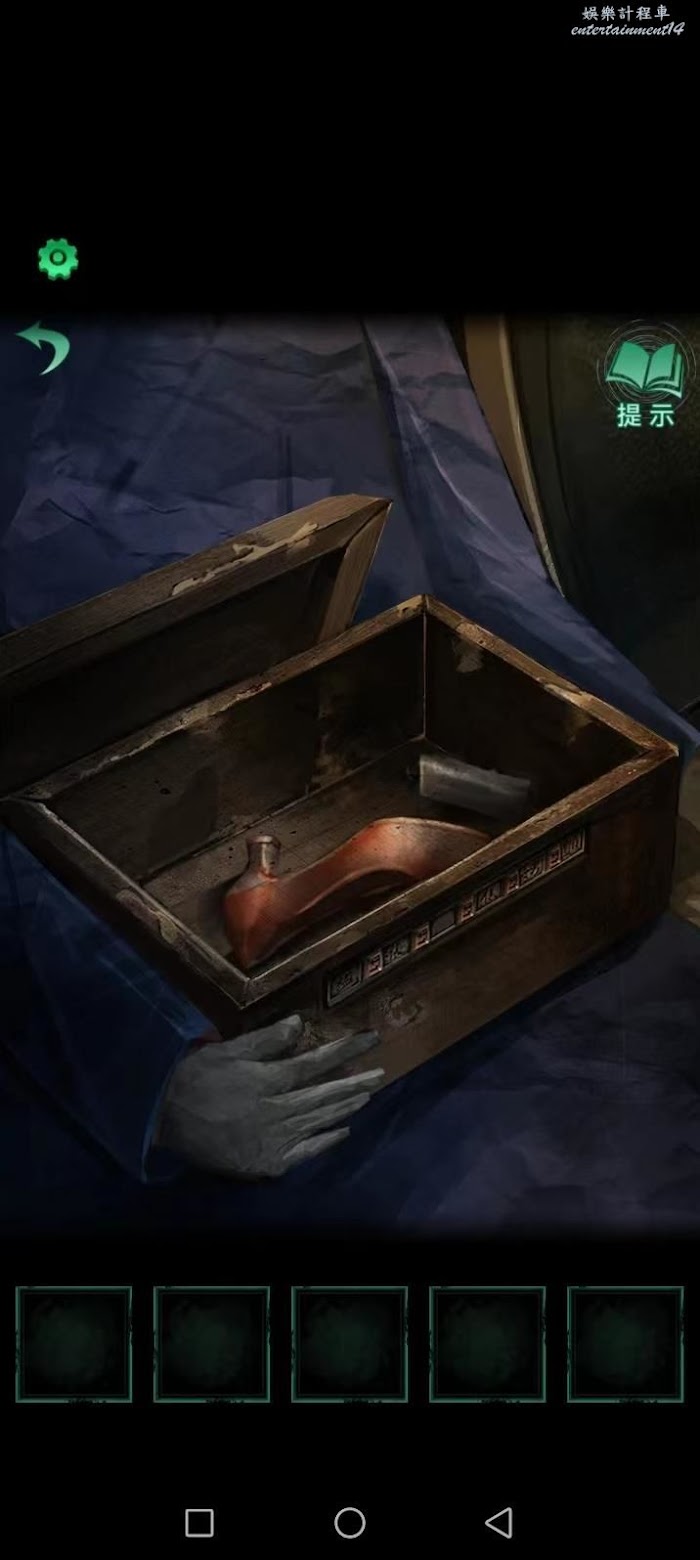 5、根據縊倀 焦娚顫的順序,打開紙人手上的盒子,但紙人不讓,再根據之前手指的順序,食指、小拇指、大拇指、中指、無名指,拿開紙人的手指獲得高跟鞋和蠟燭;