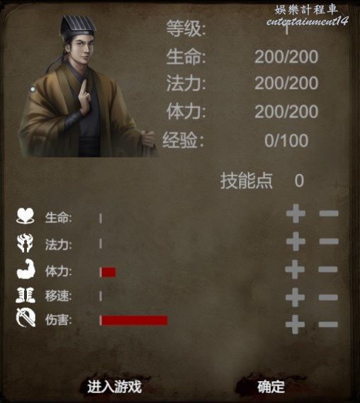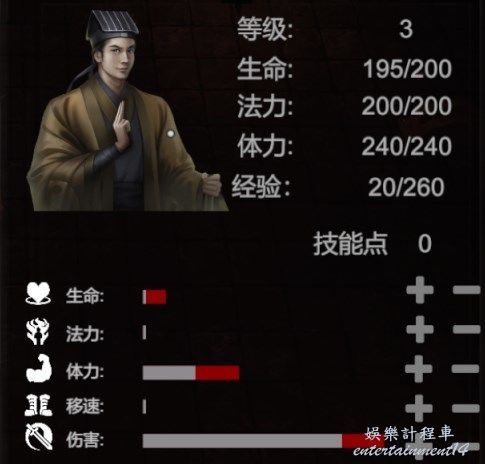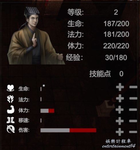開局傷害4體力1加點,符劍士主加傷害副體力,傷害點滿就主點體力加生命,因為前期開荒太靠道劍+附魔,困難模式下怪堪比血牛,1級的你連路邊上的狗都要砍半天,所以傷害是首選,體力是次要。
