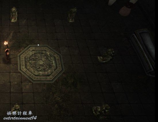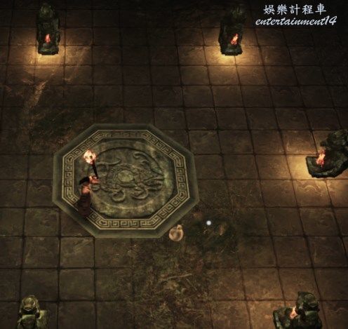 這個密室的解密也很簡單,用你的心頭血點燃每個雕像,棺材裡的女鬼就會出來,打敗他以後就可以獲得第二個機關材料。